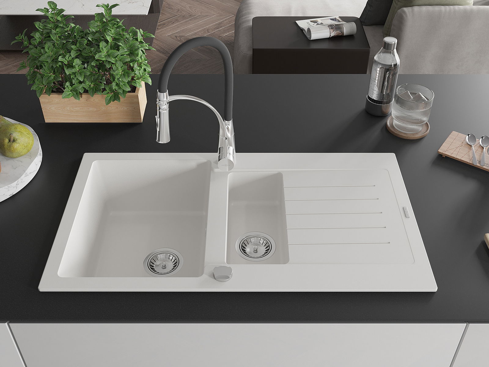 Повърхността на мивката е устойчива на петна и обезцветяване, благодарение на които е лесно да се почиства и запазва цвета си за дълго време. Естетически и практически допълващи всяка кухня.