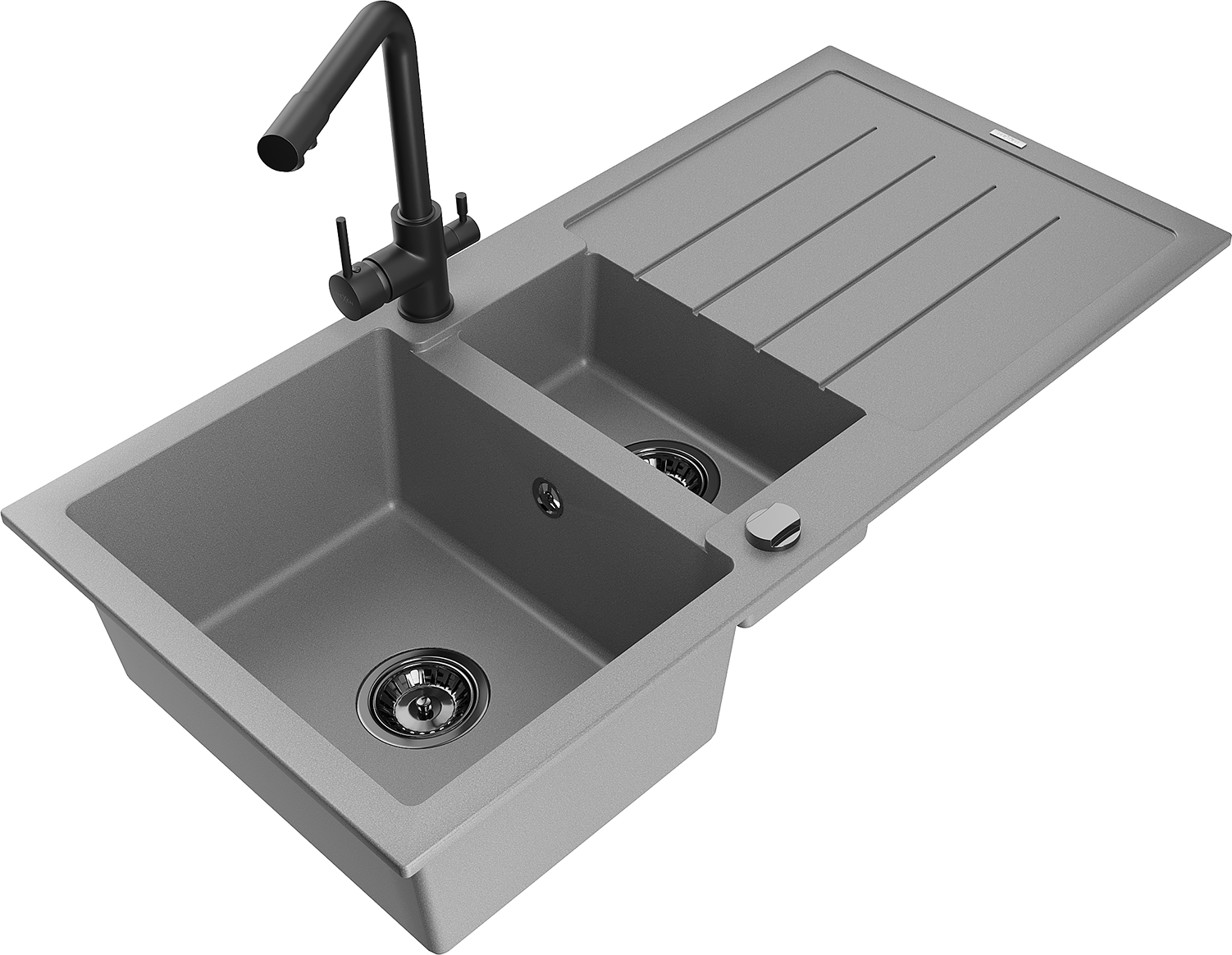 Mexen Andres гранитна мивка 1,5-коморна с отцедник и кухненски смесител Duero, сив - 6515-71-671600-70-B