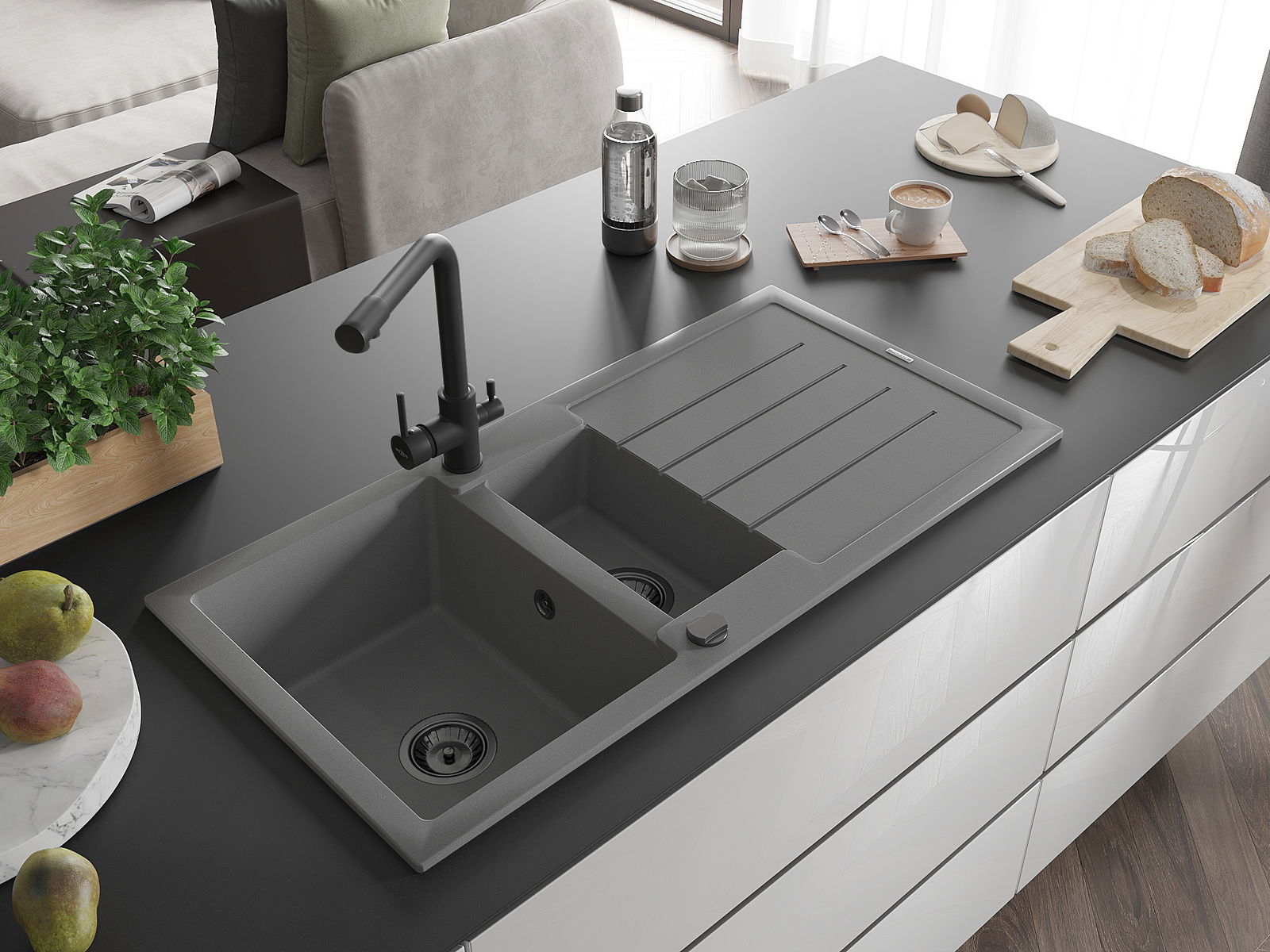 Мивката е направена от висококачествен гранит. Това е елегантно и най -вече практично допълнение към всяка кухня, независимо от нейния стил. Висококачествената и гранитна издръжливост осигуряват много години употреба.