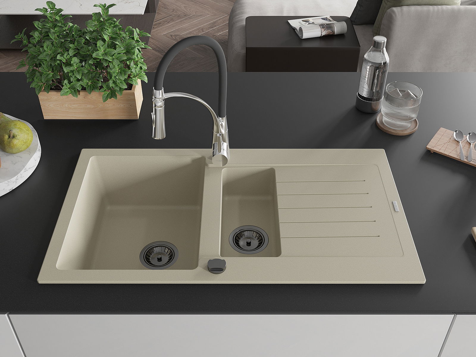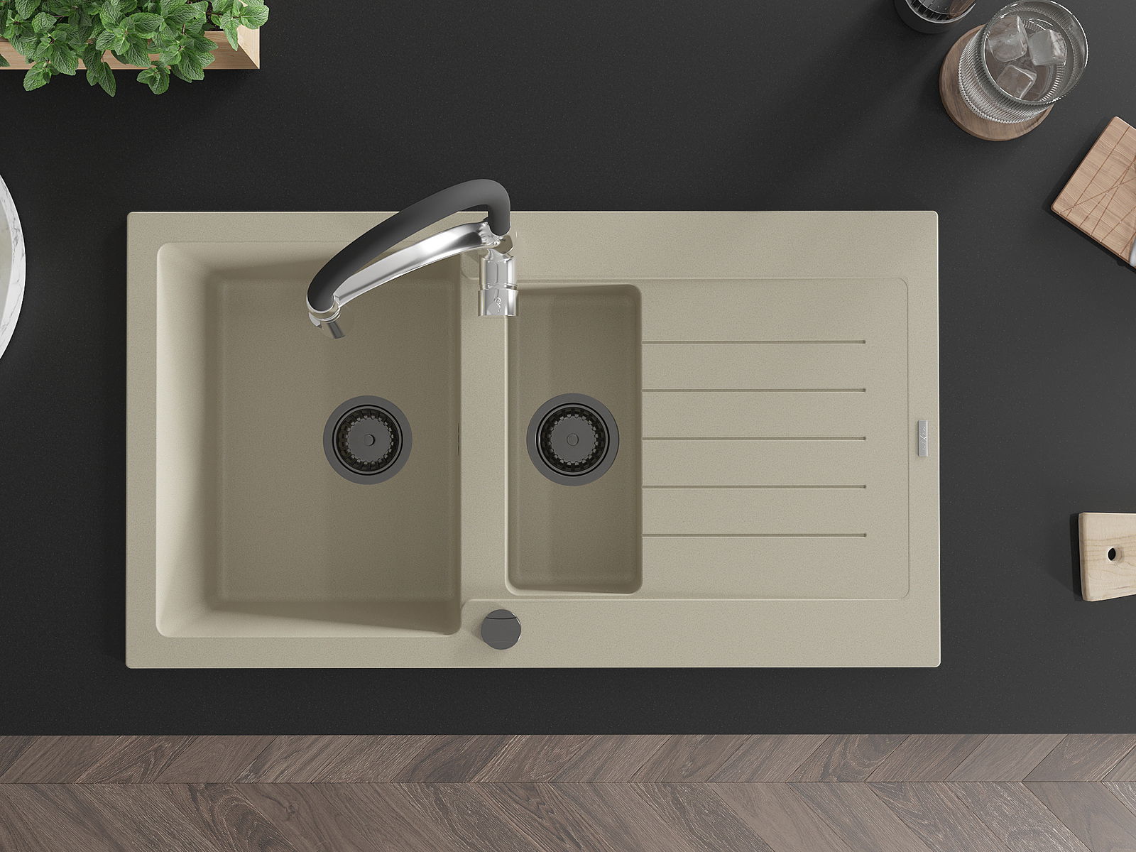 Повърхността на мивката е устойчива на петна и обезцветяване, благодарение на които е лесно да се почиства и запазва цвета си за дълго време. Естетически и практически допълващи всяка кухня.
