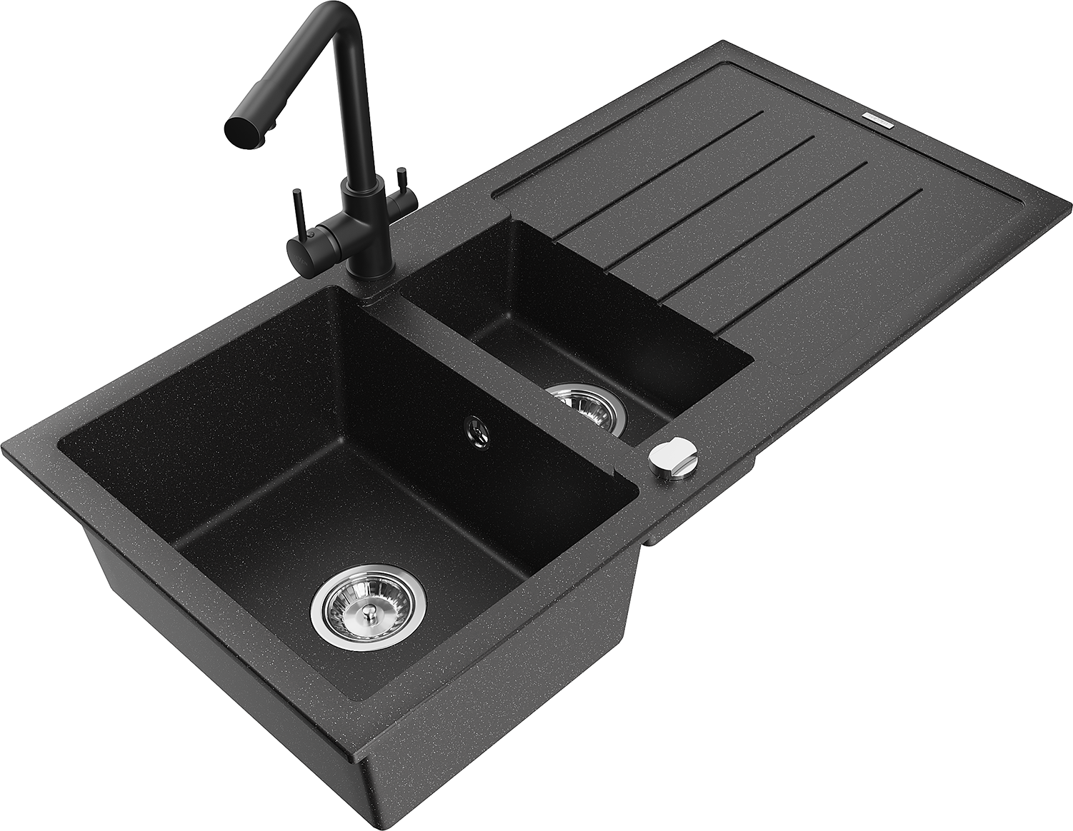 Mexen Andres гранитна мивка с 1,5 камери с отцедник и кухненски смесител Duero, черно/сребристо - 6515-73-671600-70