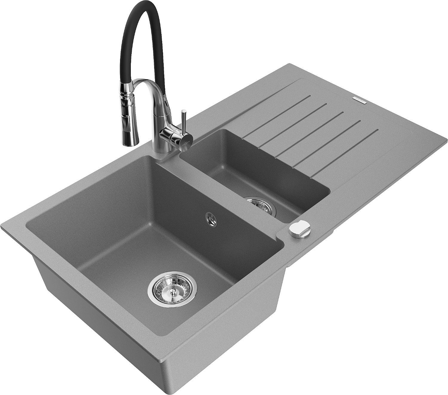 Mexen Matias гранитна мивка с 1,5 камери с отцедник и кухненски смесител Aster, сив - 6502-71-73450-07