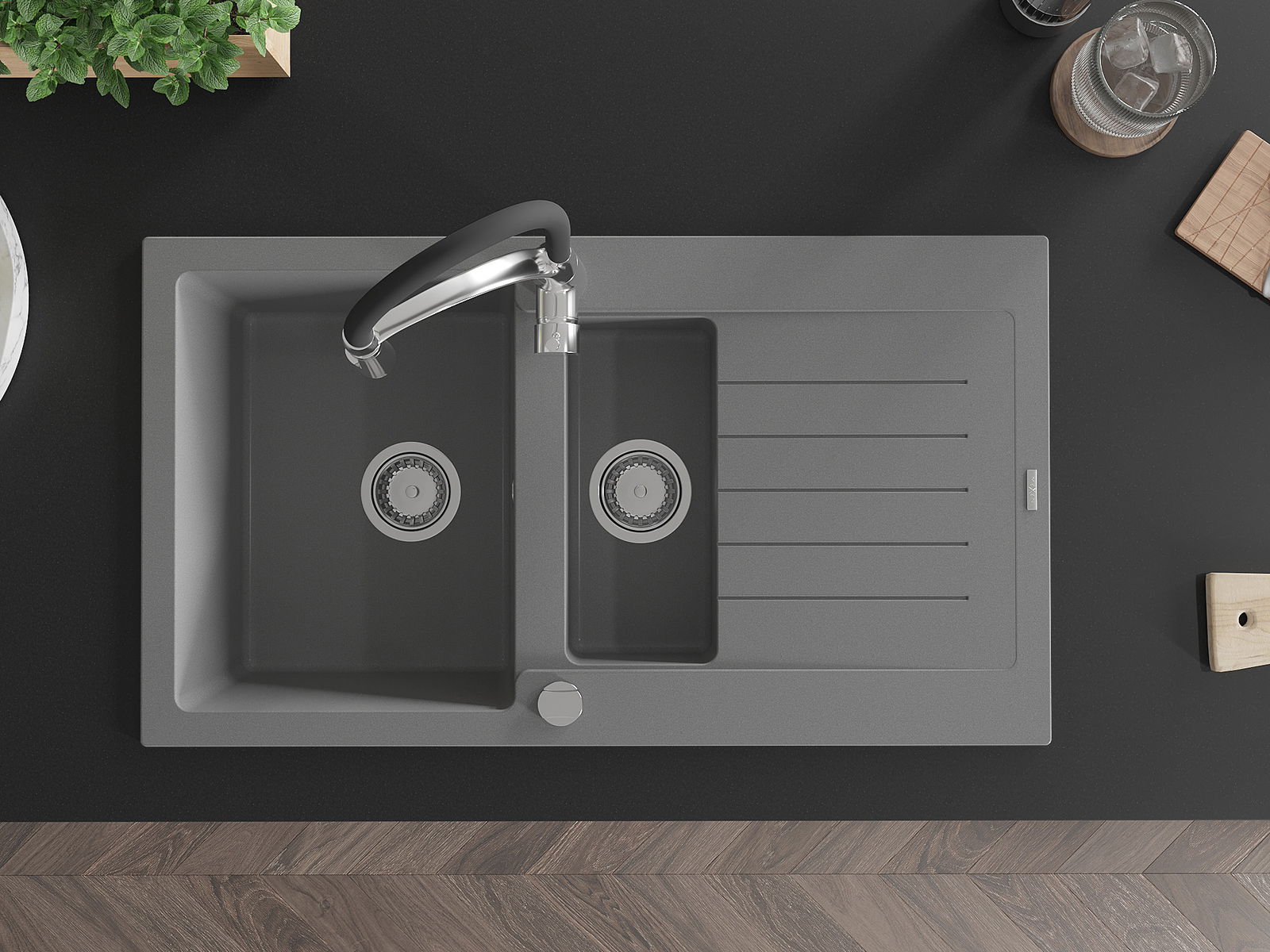 Мивката е направена от висококачествен гранит. Това е елегантно и най -вече практично допълнение към всяка кухня, независимо от нейния стил. Висококачествената и гранитна издръжливост осигуряват много години употреба.