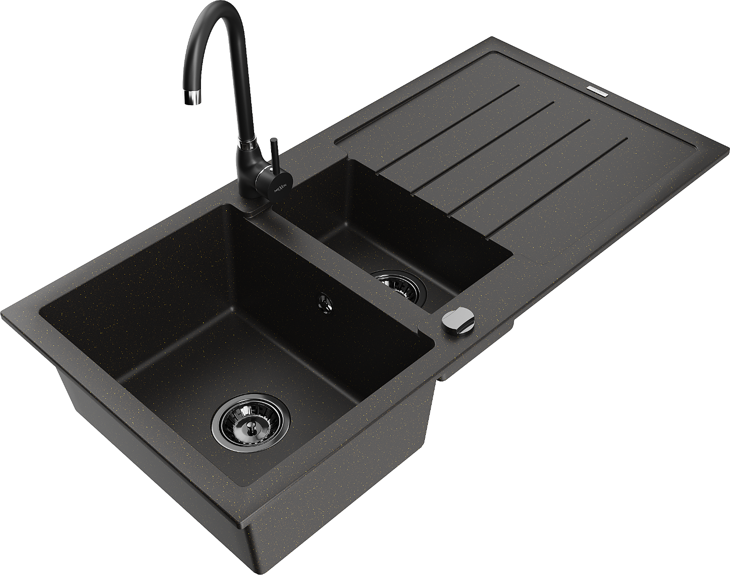 Mexen Andres гранитна мивка 1,5-коморна с отцедник и кухненски смесител Telma, черно/златно - 6515-75-670200-70-B