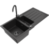 Mexen Andres гранитна кухненска мивка с 1,5 корита и отцедник и кухненски смесител Telma, черен с пръски - 6515-76-670200-70-B