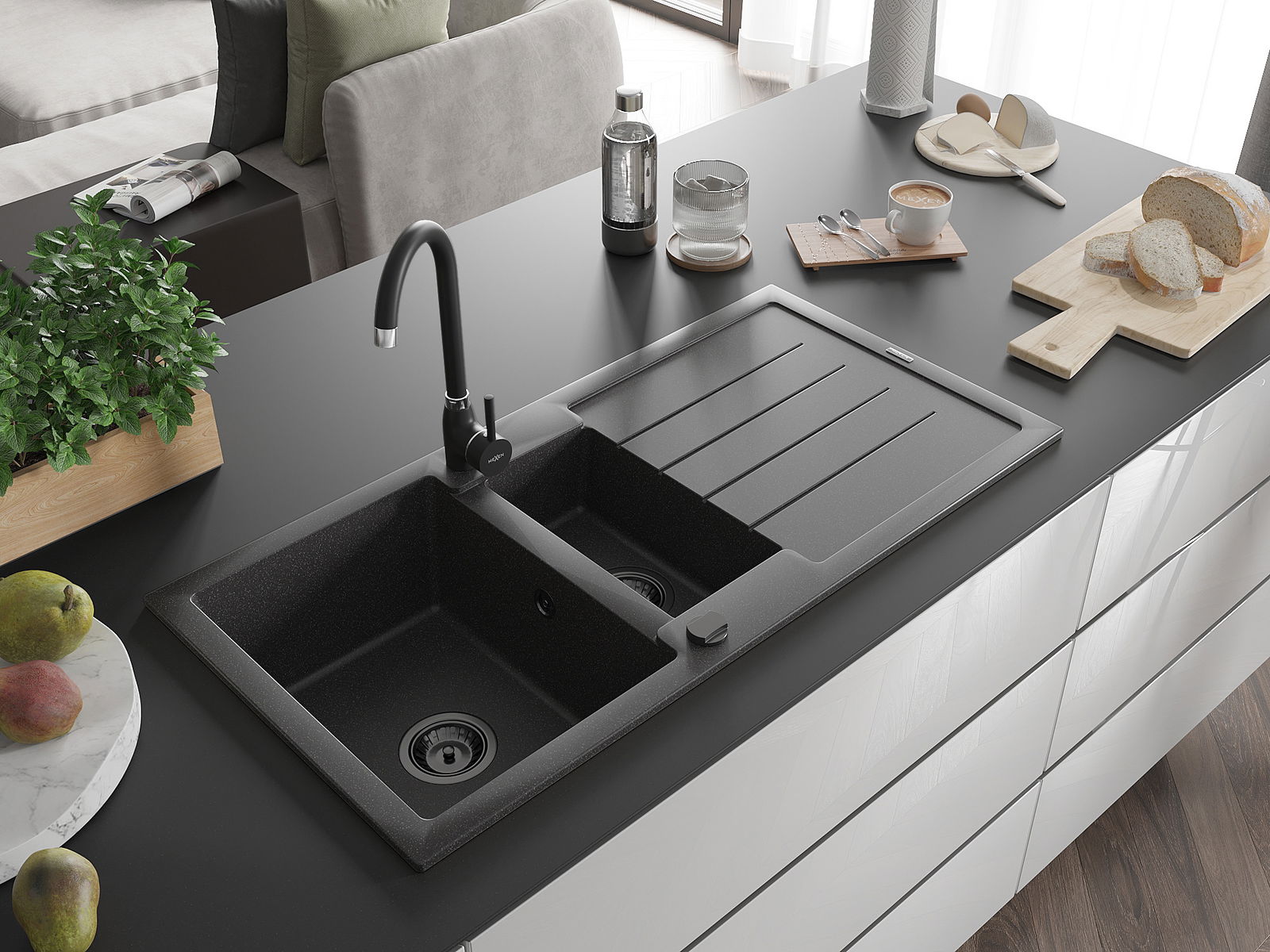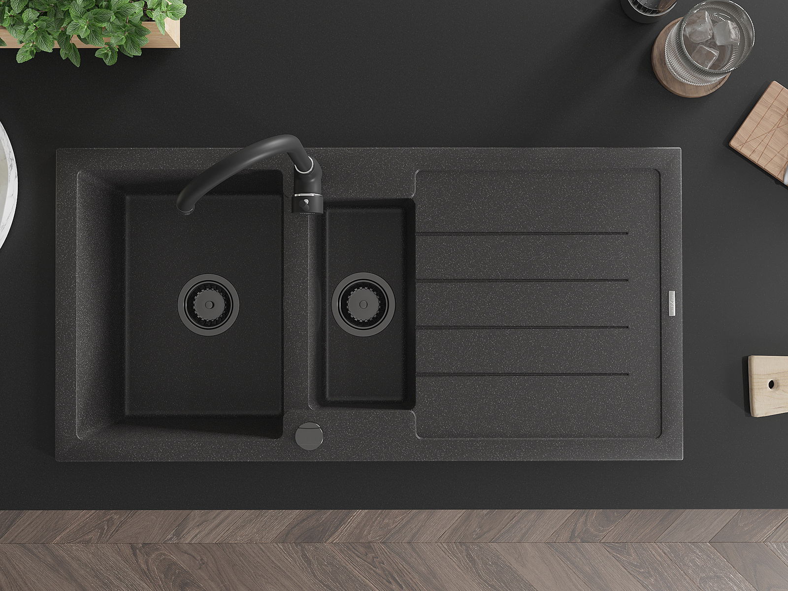 Мивката е направена от висококачествен гранит. Това е елегантно и най -вече практично допълнение към всяка кухня, независимо от нейния стил. Висококачествената и гранитна издръжливост осигуряват много години употреба.
