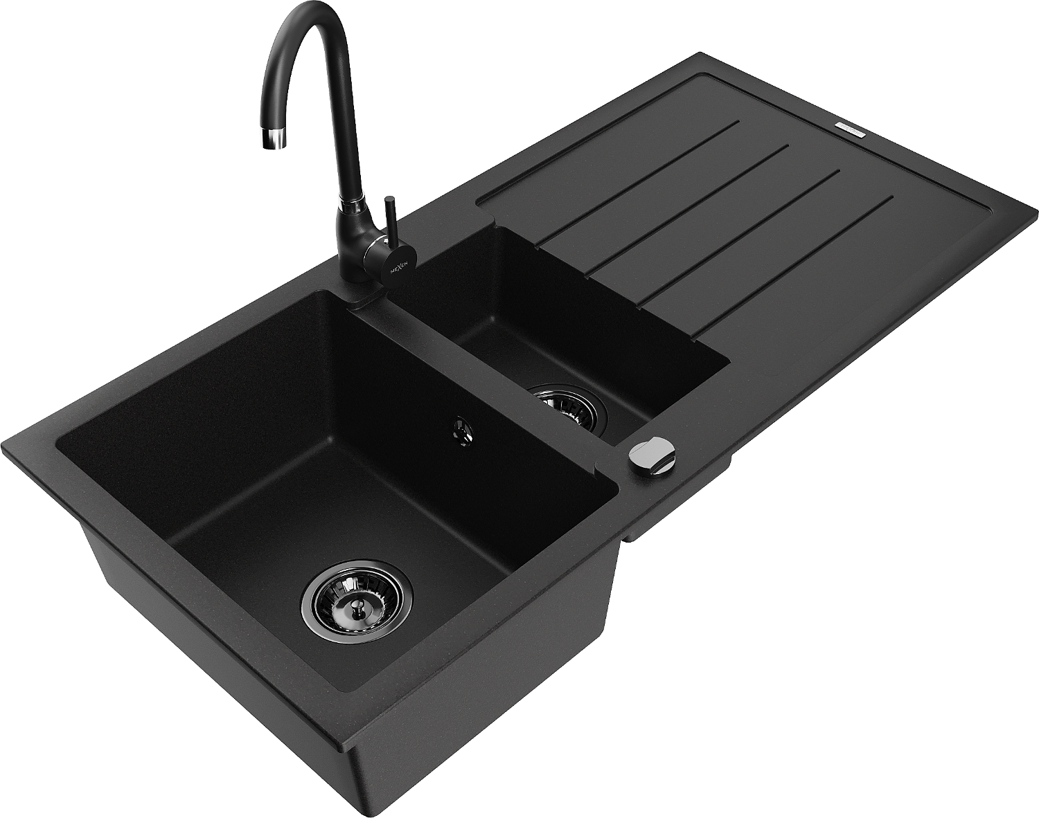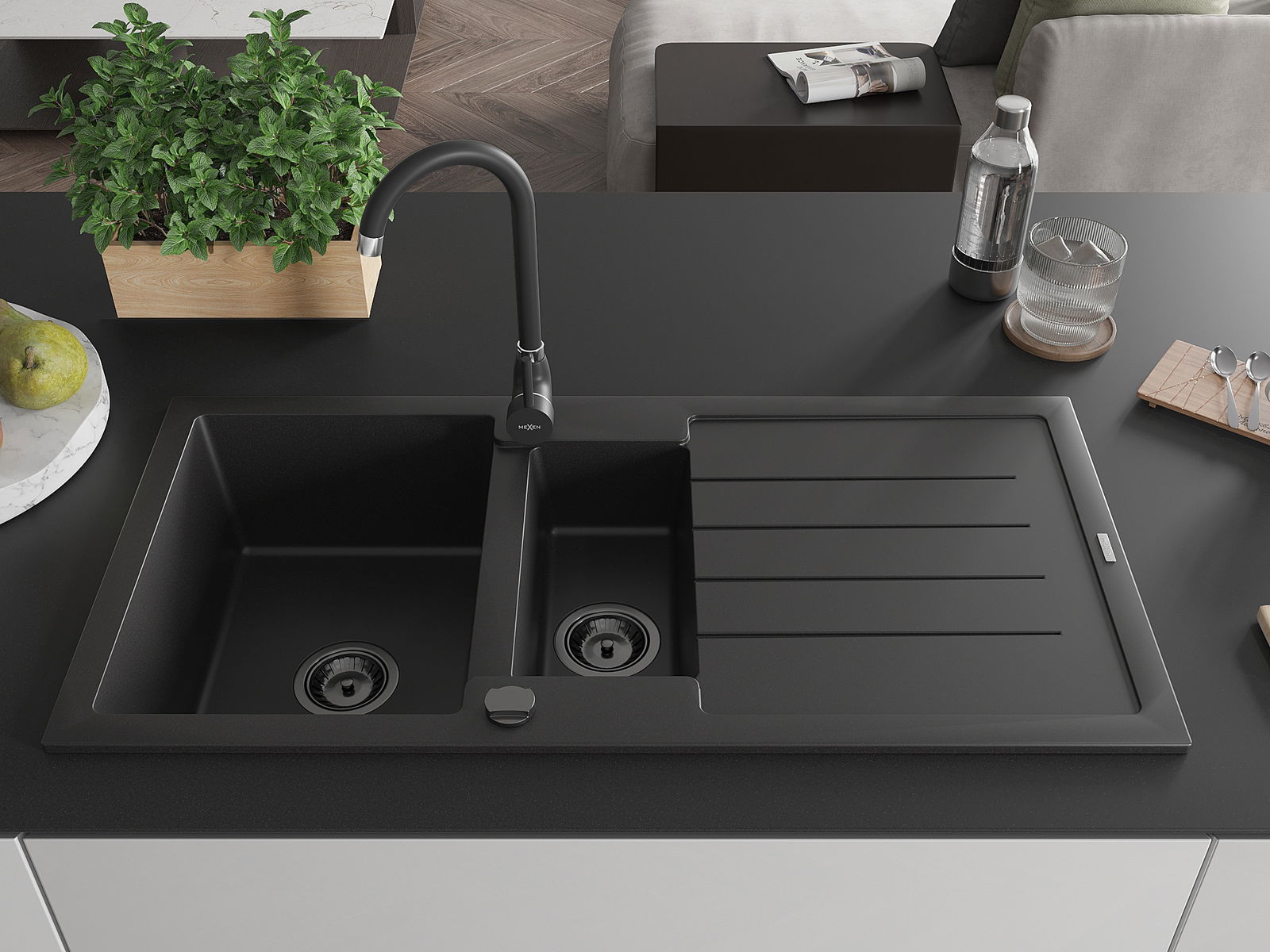 Mexen Andres гранитна мивка 1,5-коморна с отцедник и кухненски смесител Telma, черен - 6515-77-670200-70-B