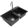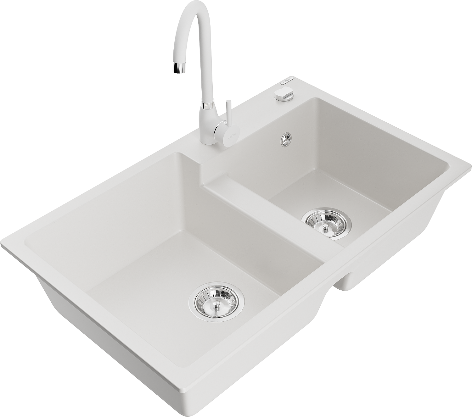 Mexen Tomas гранитна мивка с 2 камери с кухненски смесител Telma, бял