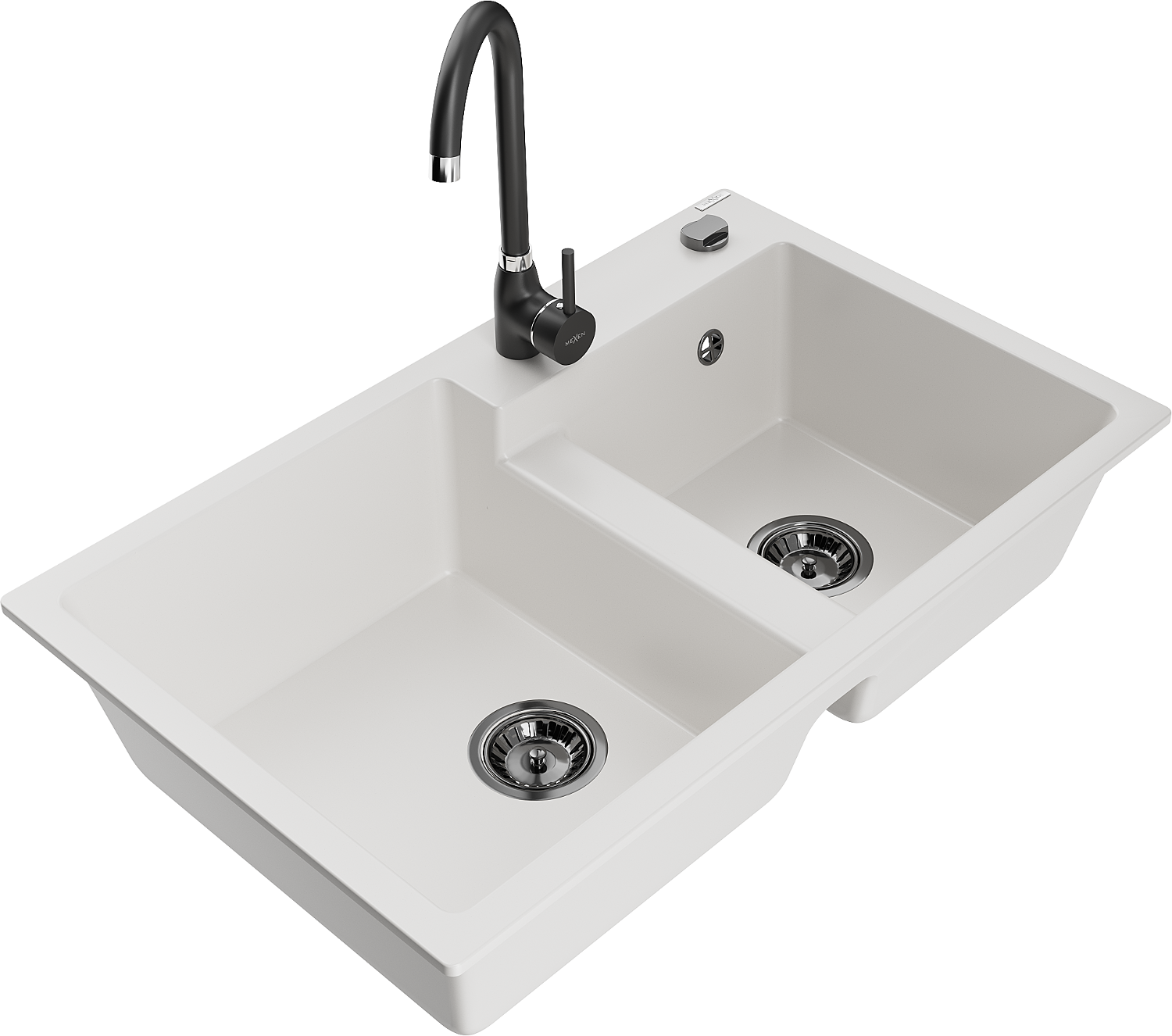 Mexen Tomas двоен гранитен кухненски мивка с кухненски смесител Telma, бял - 6516-20-670200-70