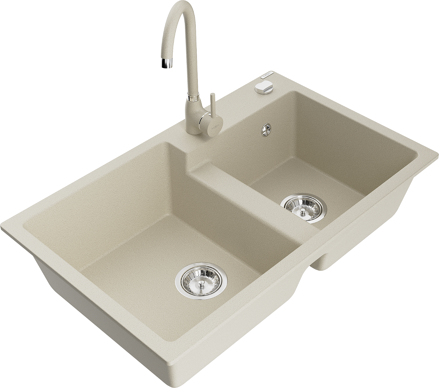 Mexen Tomas гранитна мивка с 2 камери и кухненски смесител Telma, бежов - 6516-69-670200-69