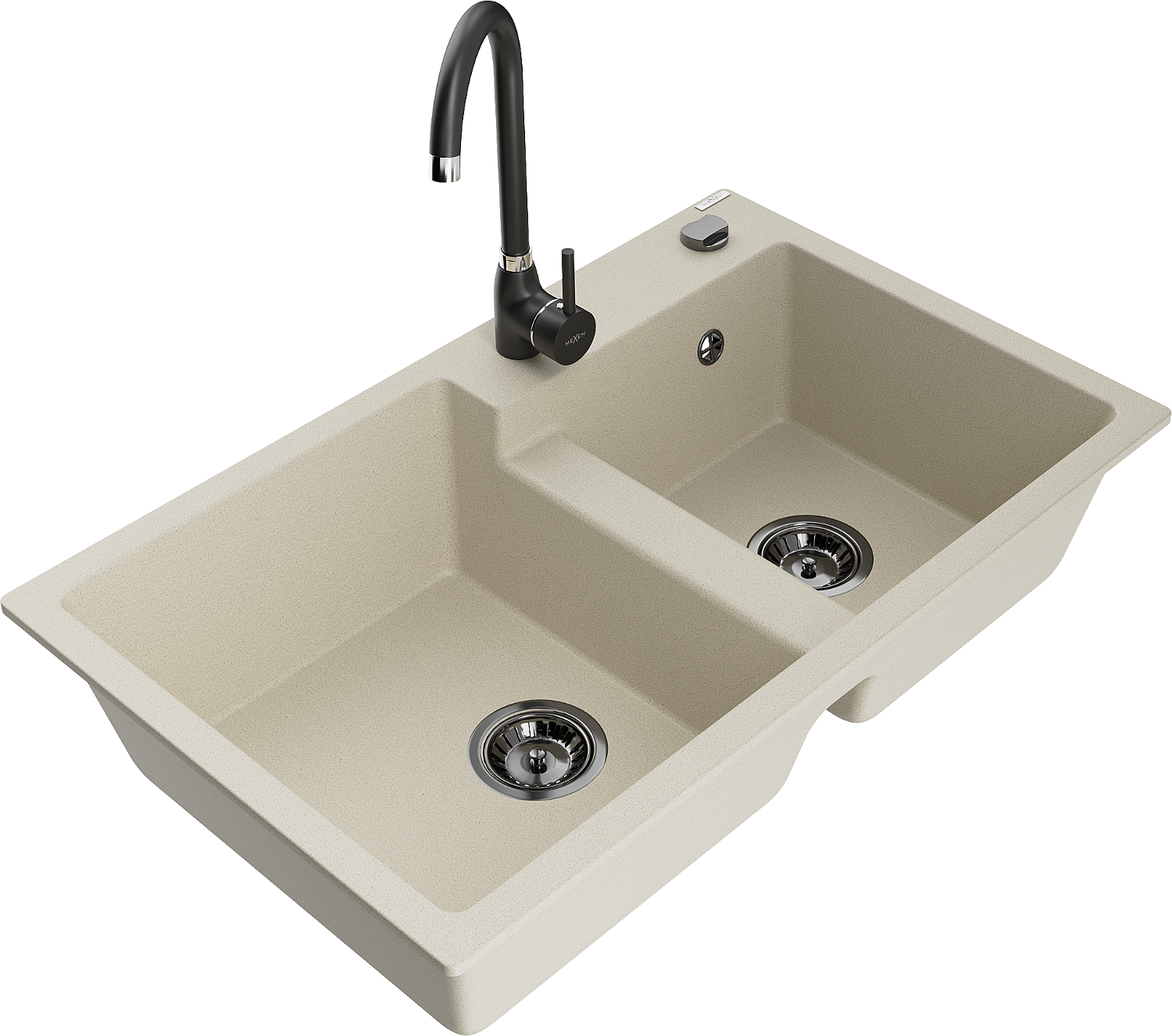 Mexen Tomas гранитна мивка с 2 отделения с кухненски смесител Telma, бежов - 6516-69-670200-70