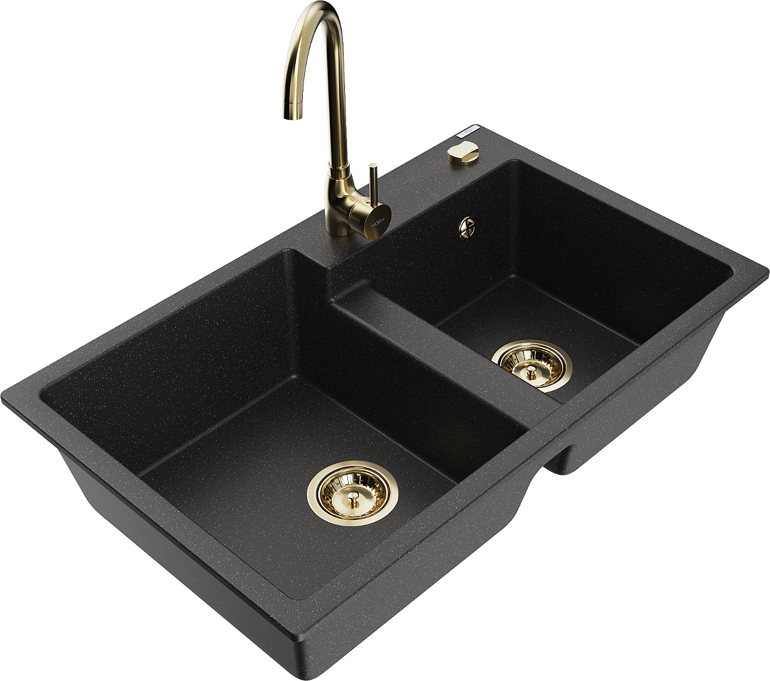 Mexen Tomas двоен гранитен мивка с кухненски батерия Telma, черен/сребърен металик - 6516-73-670200-50