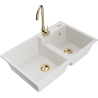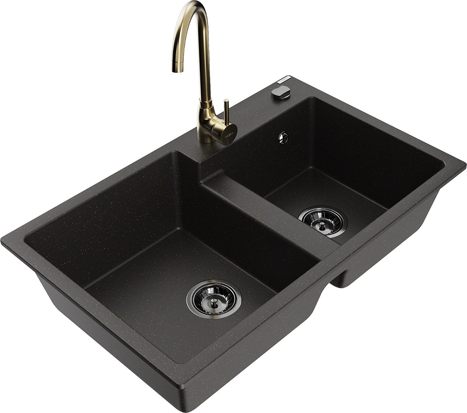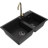 Mexen Tomas гранитна мивка с 2 камери и кухненски смесител Telma, черен/златен металик - 6516-75-670200-50-B