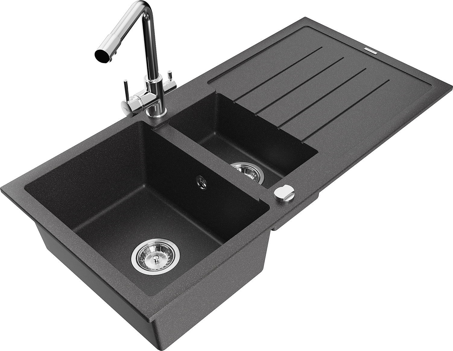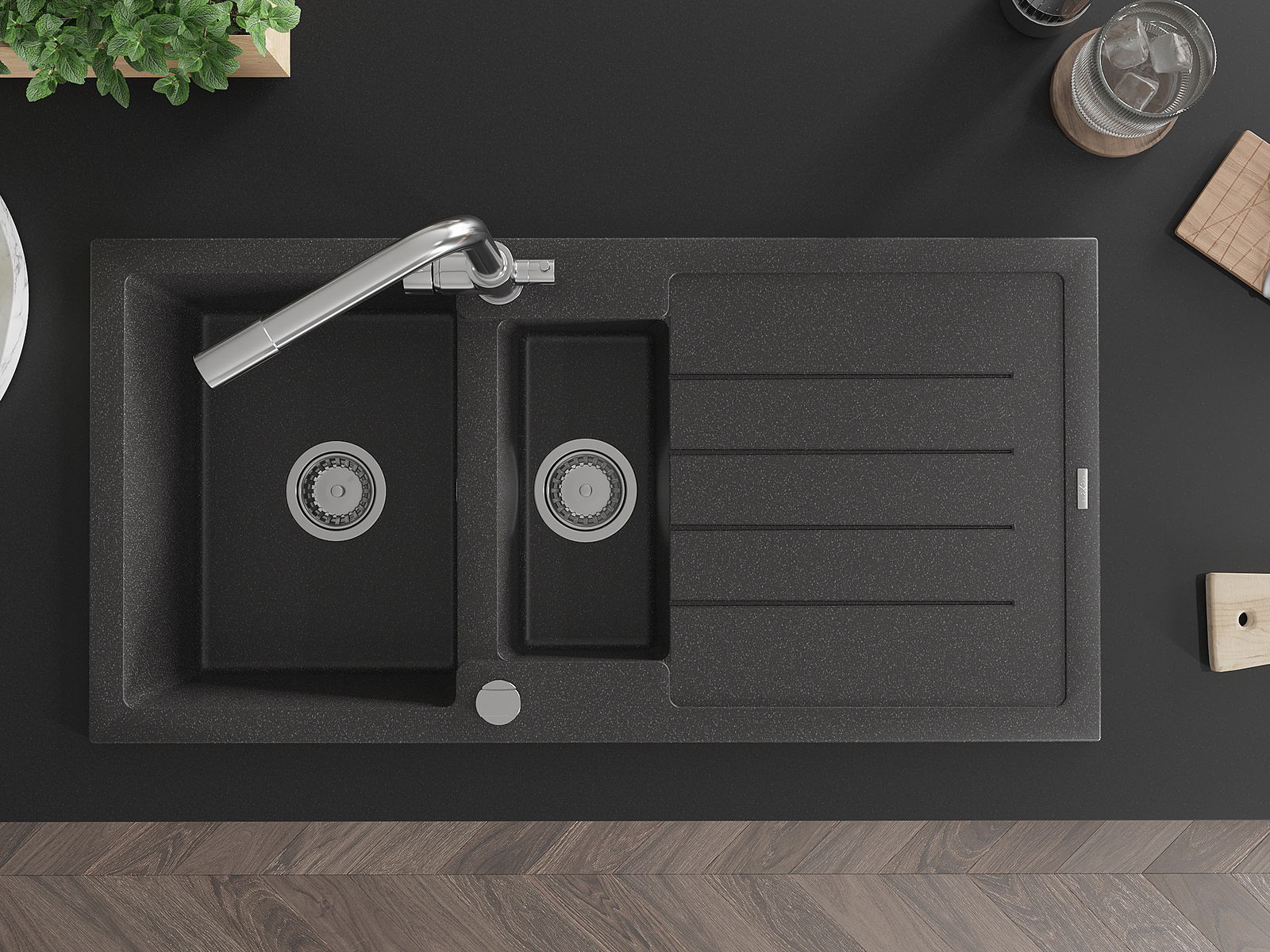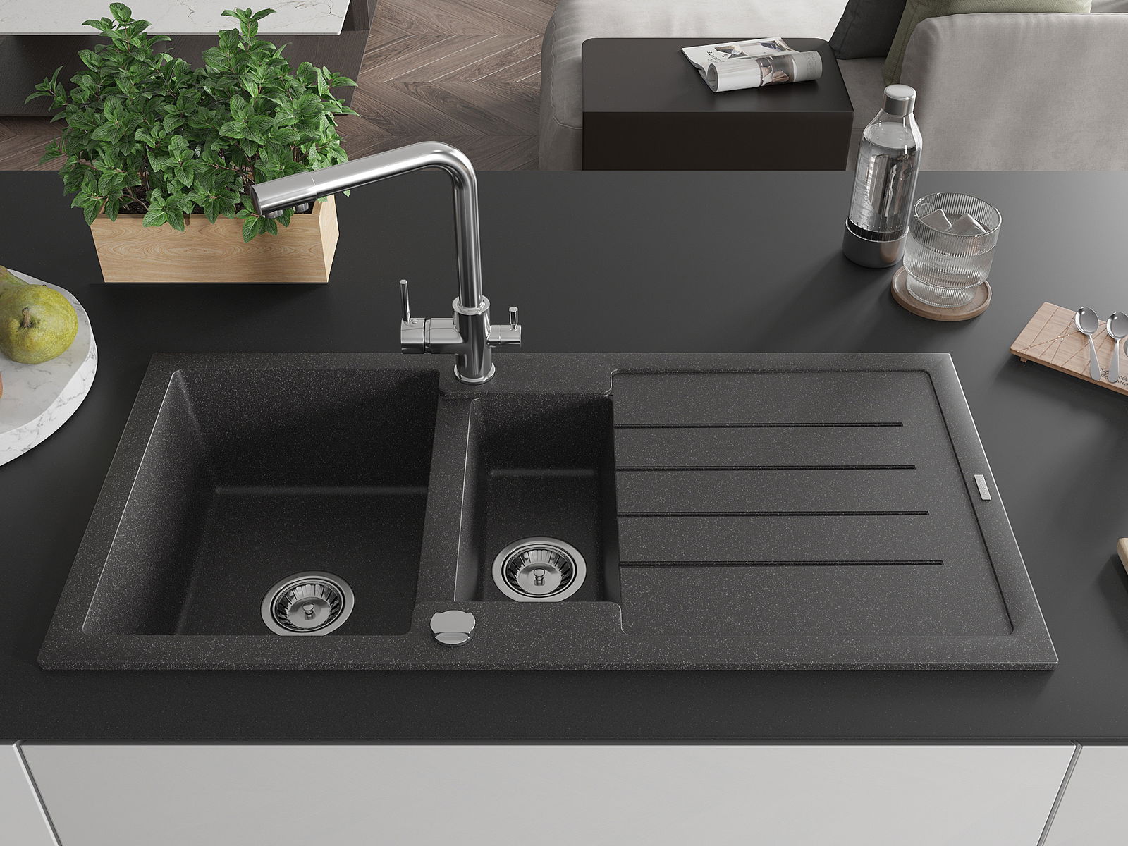 Мивката е направена от висококачествен гранит. Това е елегантно и най -вече практично допълнение към всяка кухня, независимо от нейния стил. Висококачествената и гранитна издръжливост осигуряват много години употреба.