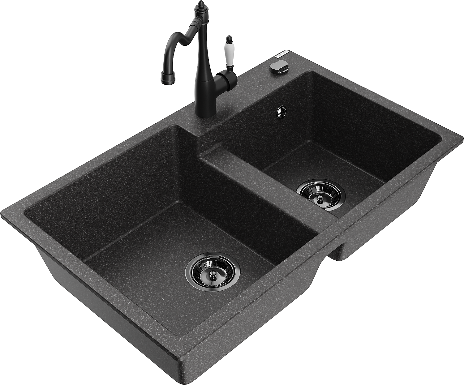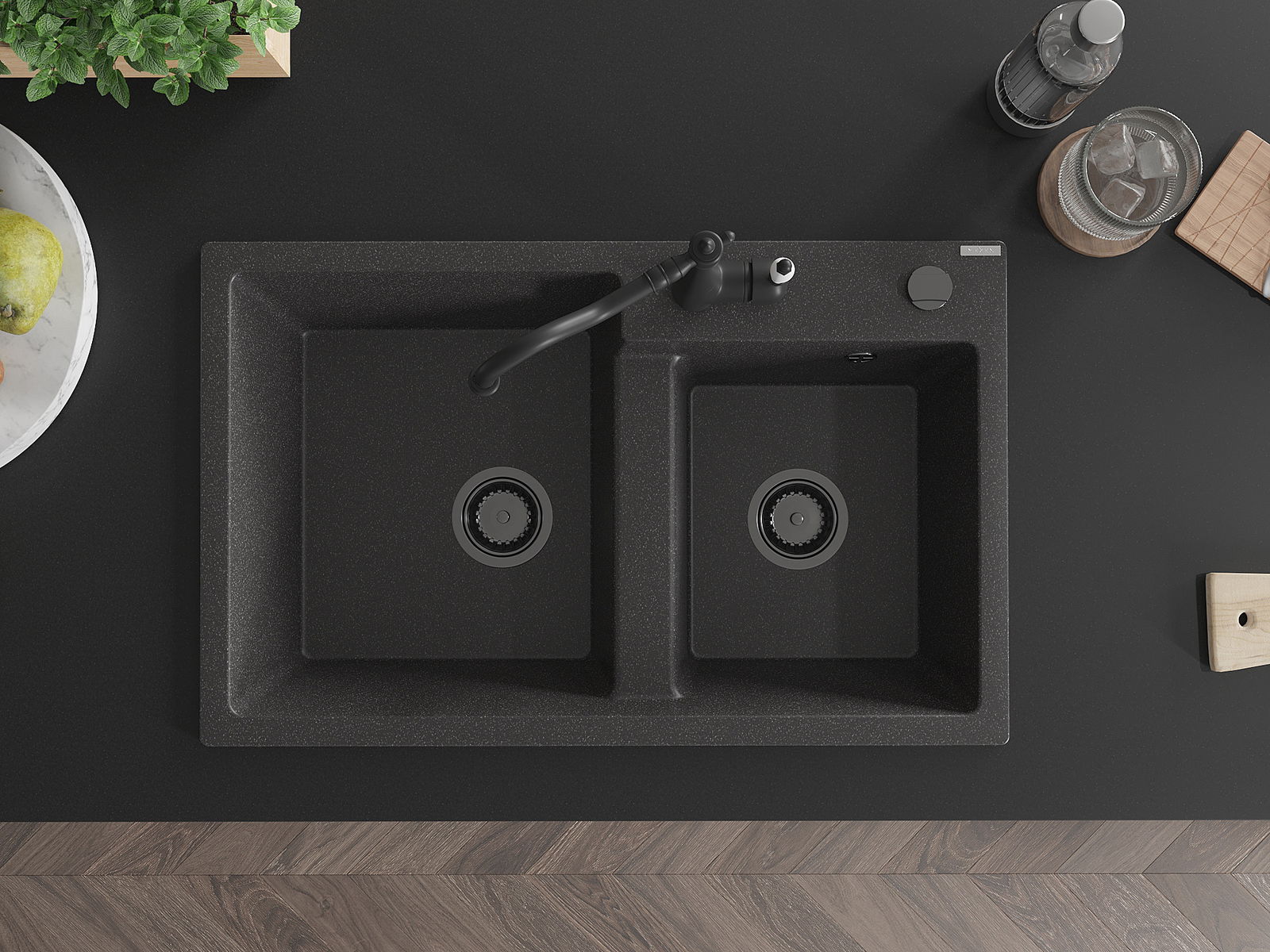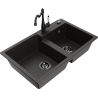 Mexen Tomas мивка от гранит с 2 камери с кухненски смесител Carla, черен на капки - 6516-76-670700-70-B