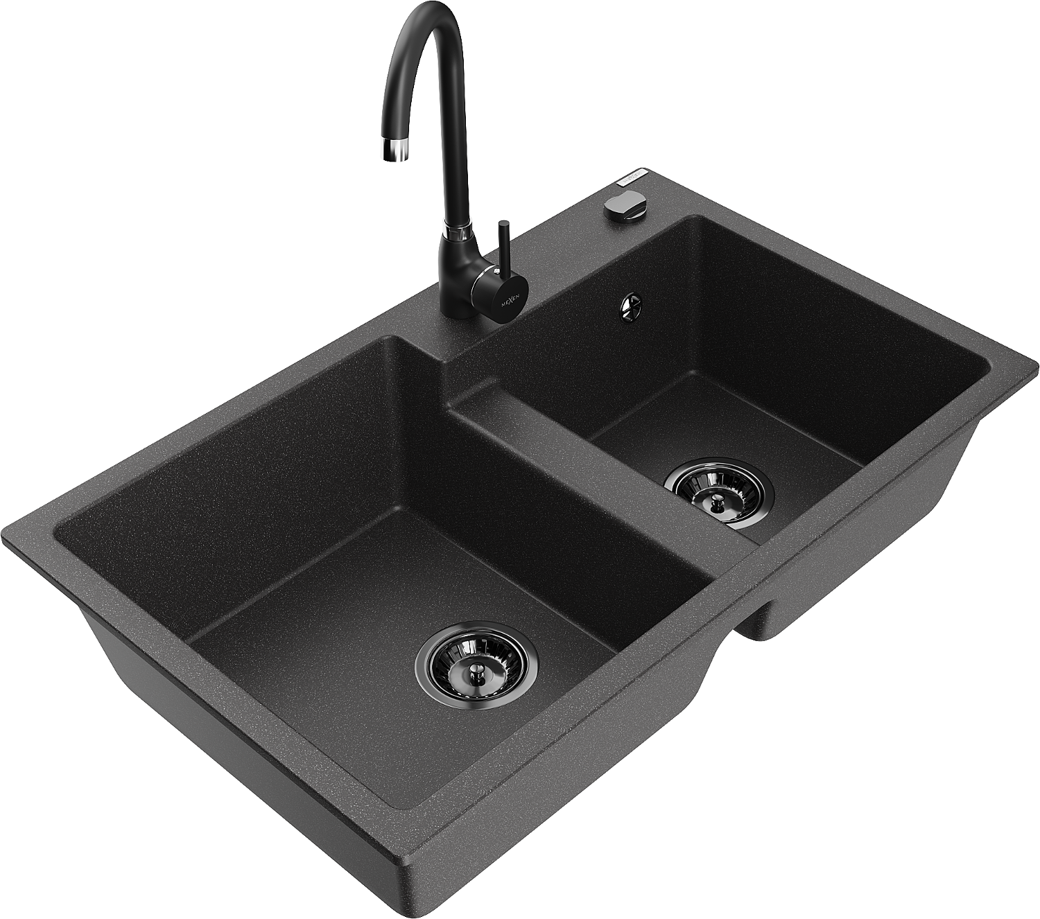 Mexen Tomas гранитна мивка с 2 отделения и кухненски смесител Telma, черна с пръски - 6516-76-670200-70-B