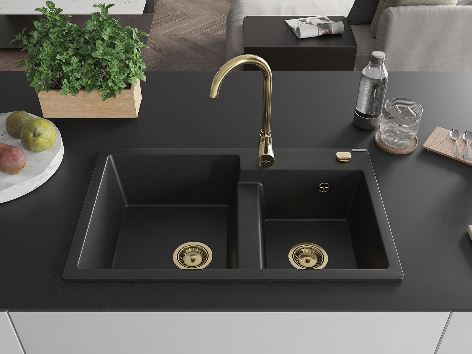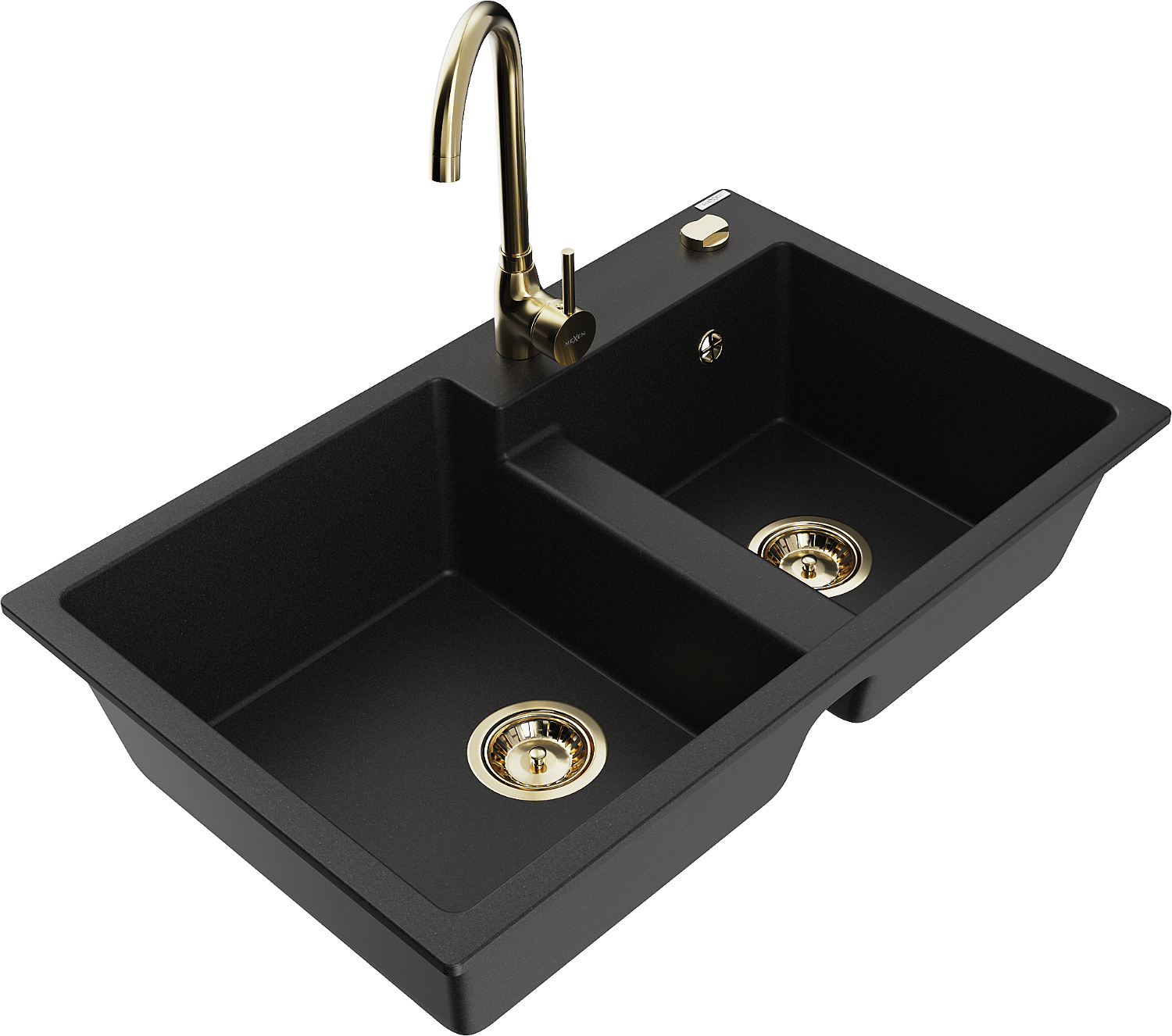 Mexen Tomas гранитна мивка с 2 камери с кухненски кран Telma, черна - 6516-77-670200-50