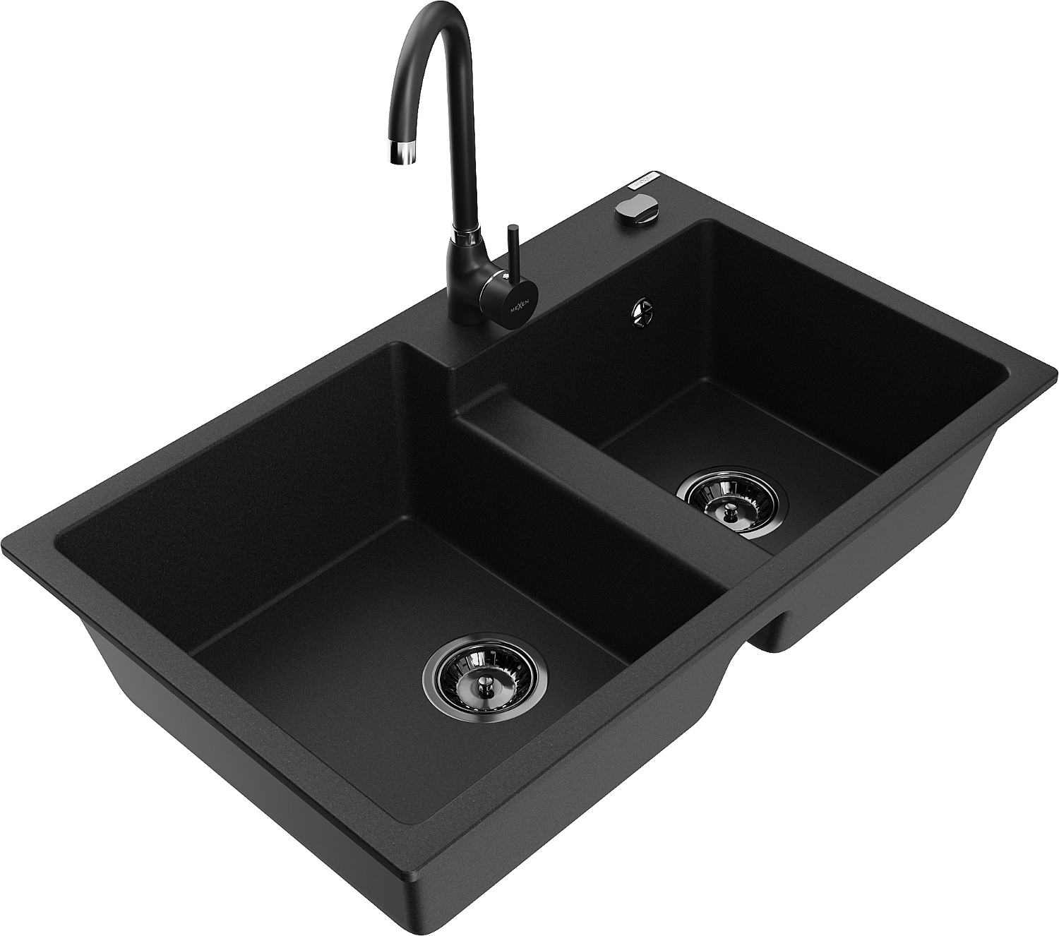 Mexen Tomas гранитна мивка с 2 камери с кухненски смесител Telma, черен - 6516-77-670200-70-B