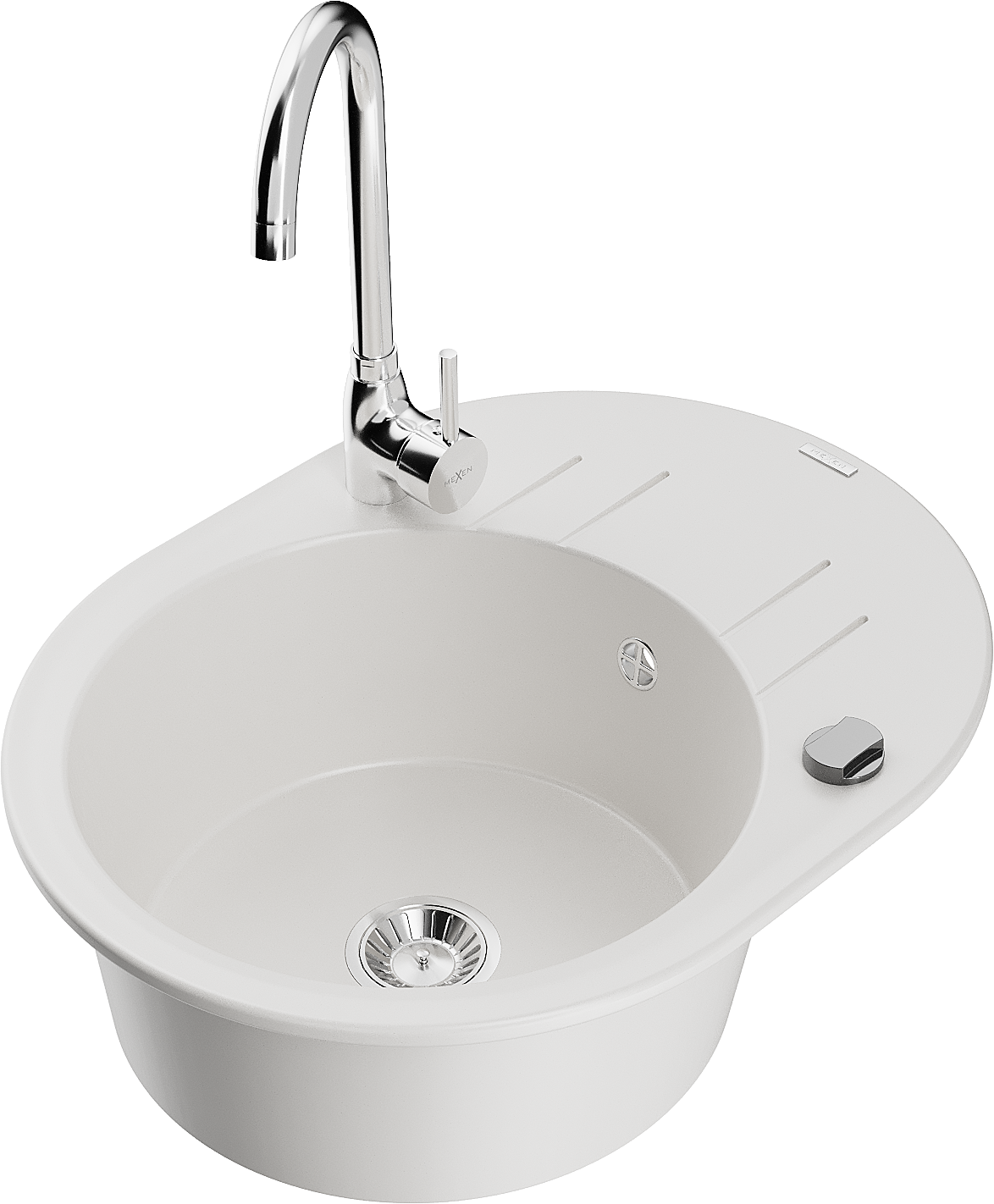 Мивка Mexen Kevin от гранит с 1 камера с отцедник и кухненски смесител Telma, бял - 6517-20-670200-00