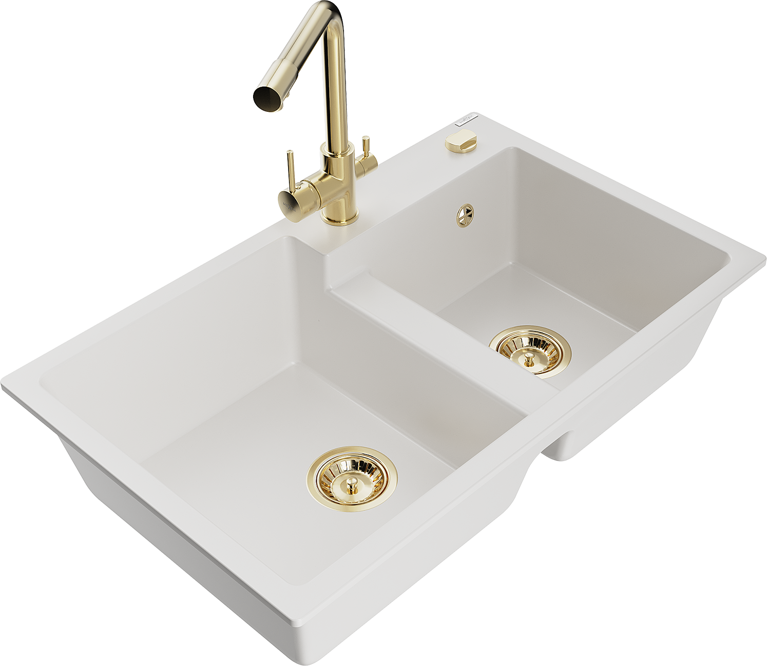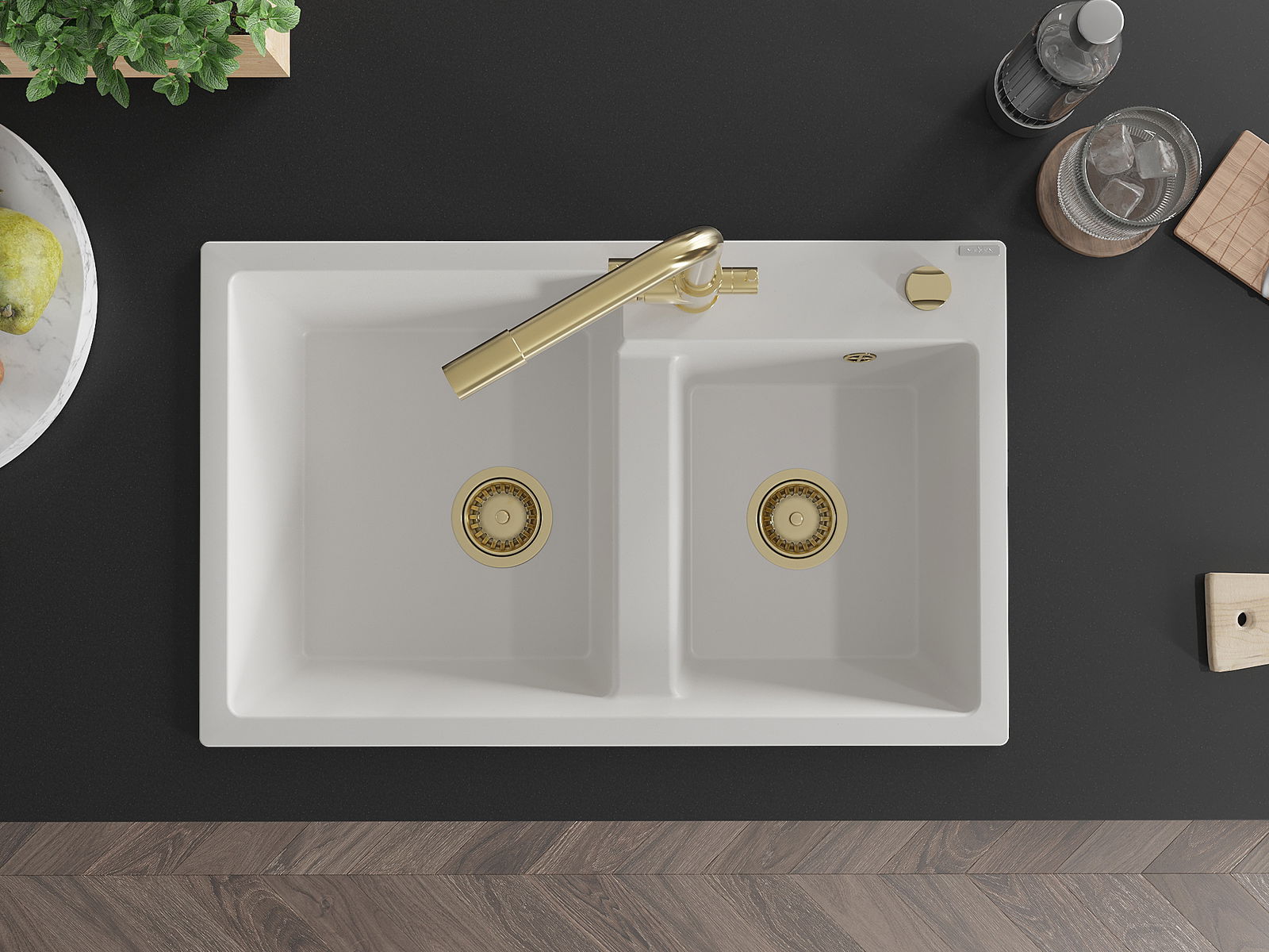 Mexen Tomas гранитна мивка 2-коморна с кухненски смесител Duero, бял - 6516-20-671600-50