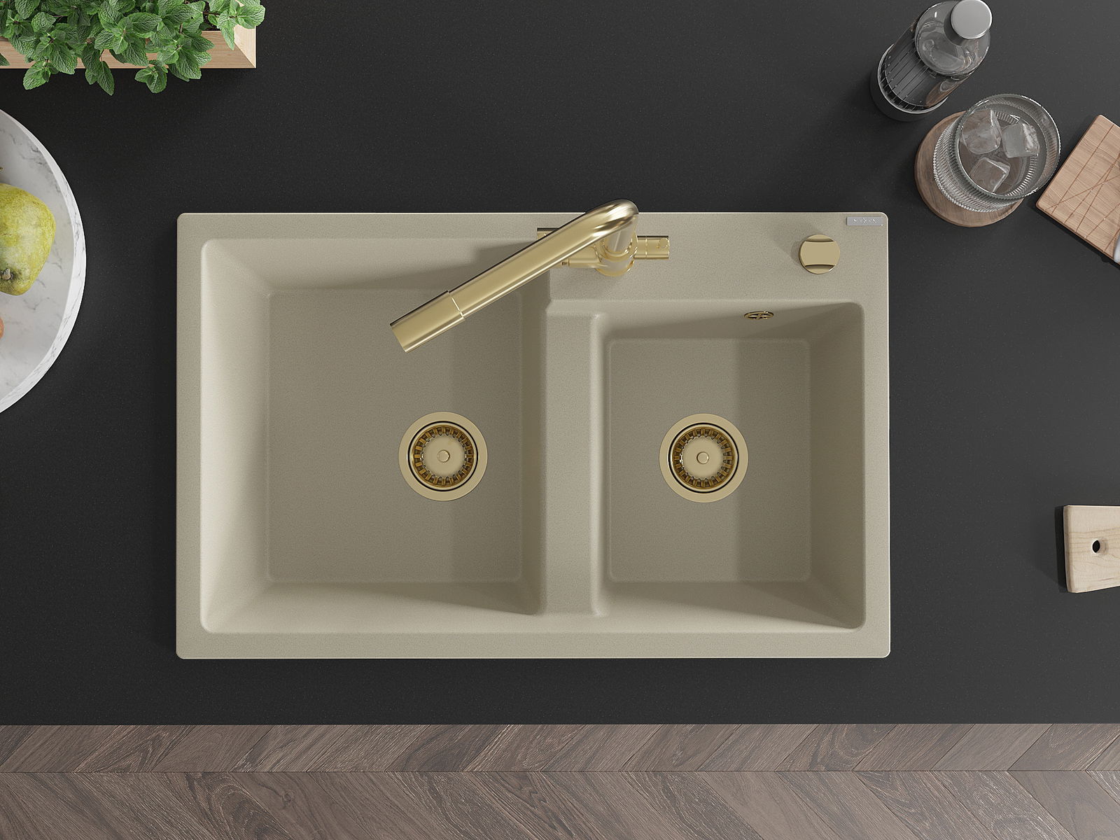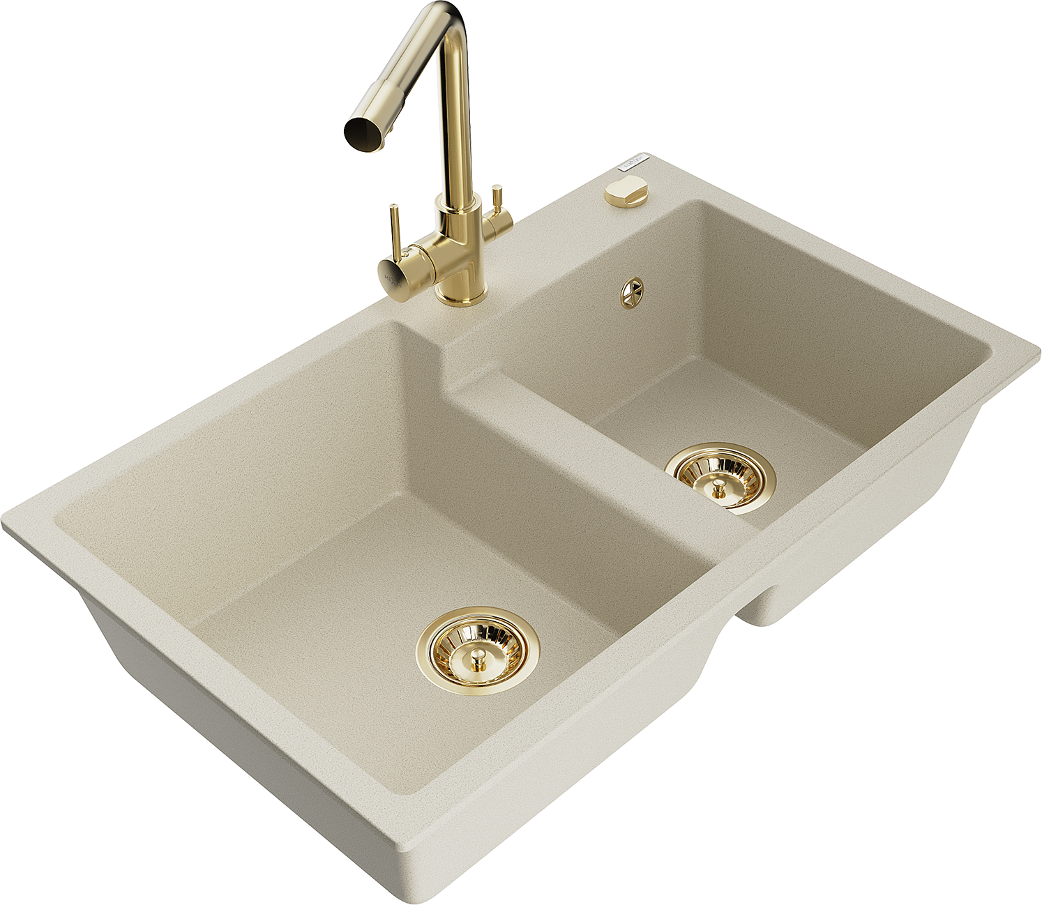 Mexen Tomas гранитна мивка с 2 отделения с кухненски смесител Duero, бежов - 6516-69-671600-50