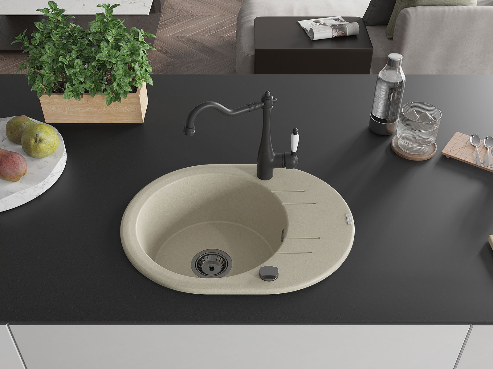 Мивката е направена от висококачествен гранит. Това е елегантно и най -вече практично допълнение към всяка кухня, независимо от нейния стил. Висококачествената и гранитна издръжливост осигуряват много години употреба.