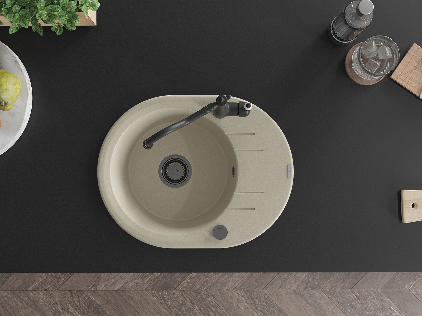 Гранитна мивка Mexen Kevin с една камера, с изцедник и кухненски смесител Carla, бежов - 6517-69-670700-70