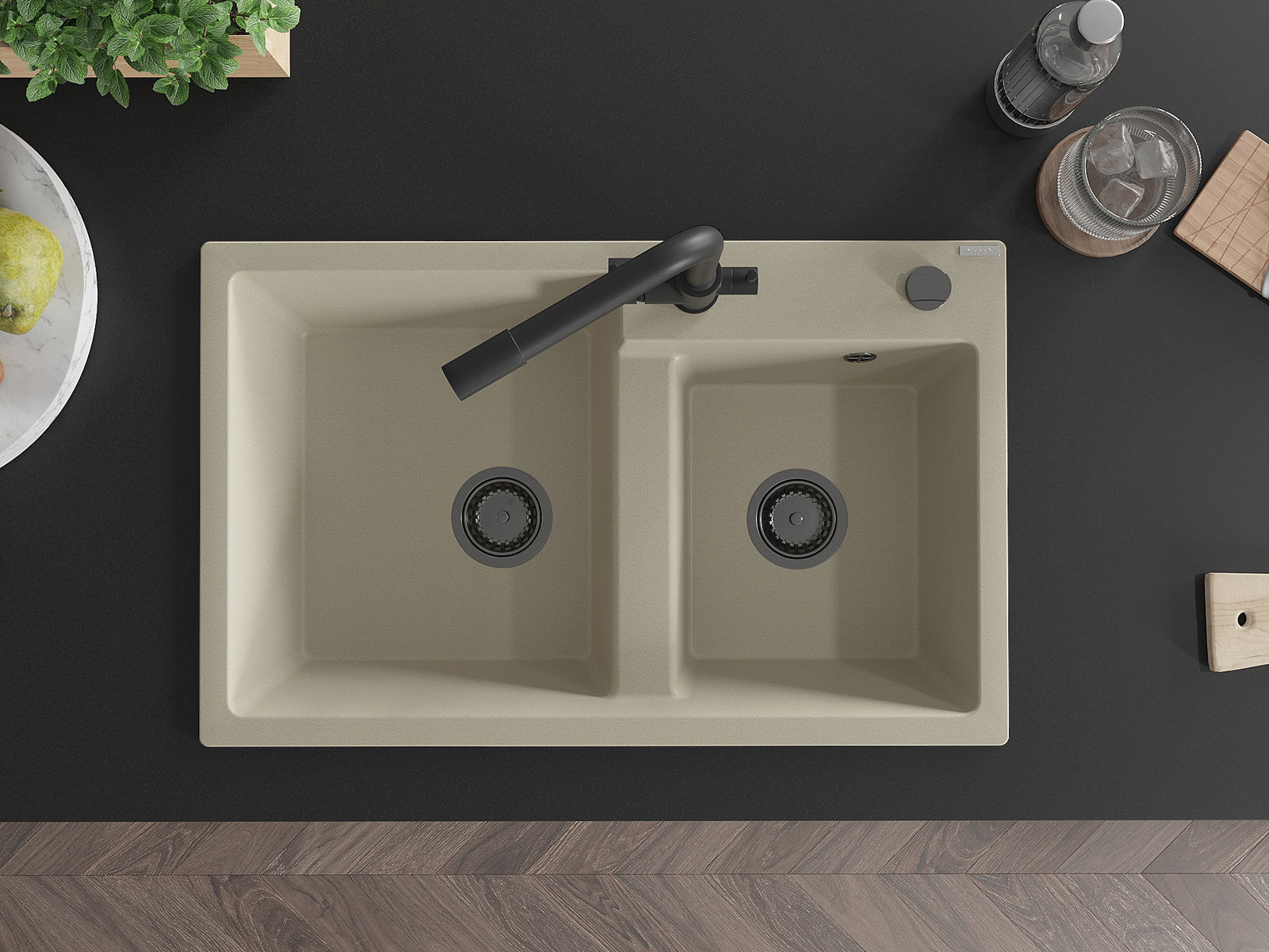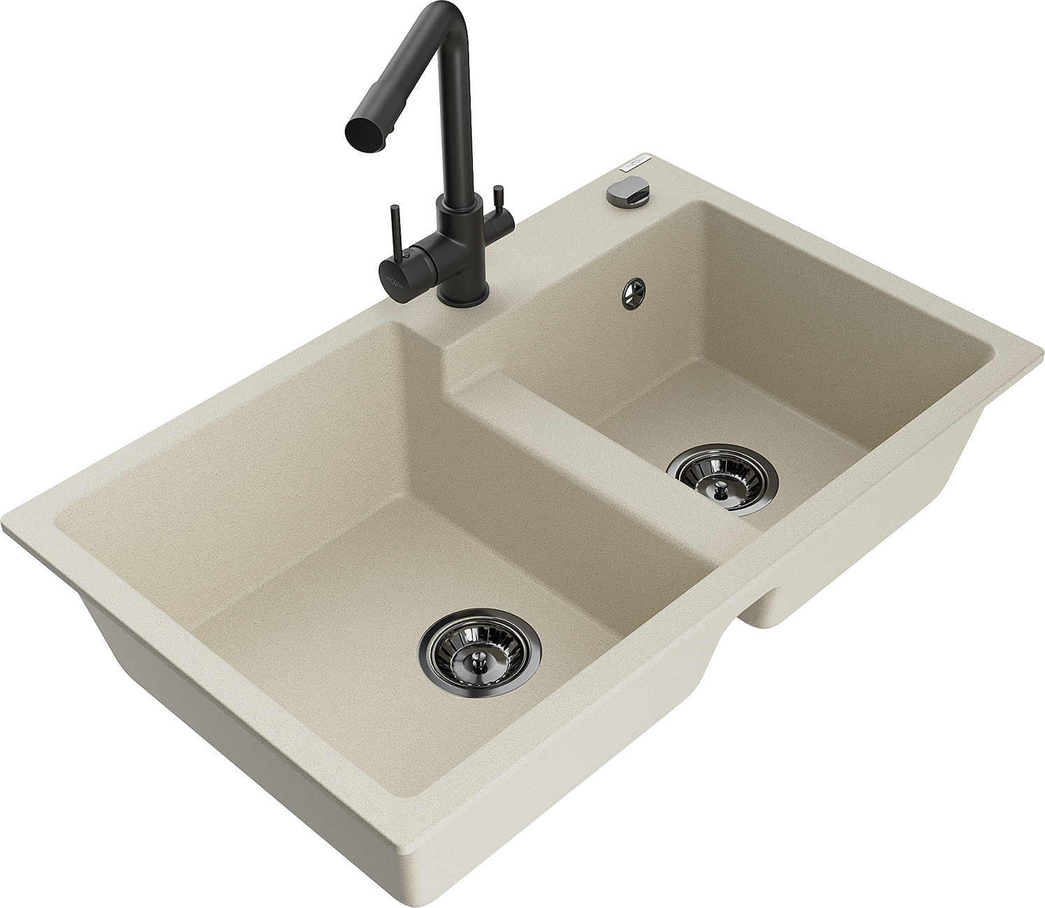 Mexen Tomas гранитна мивка 2-камерна с кухненски кран Duero, бежова - 6516-69-671600-70