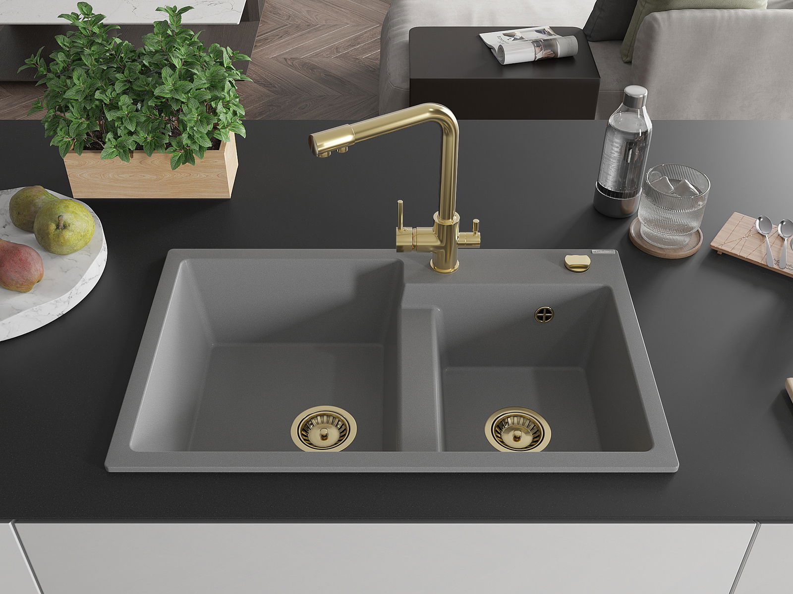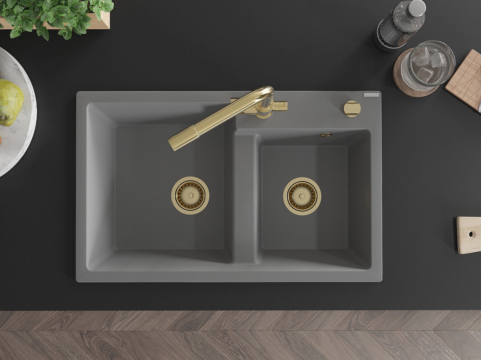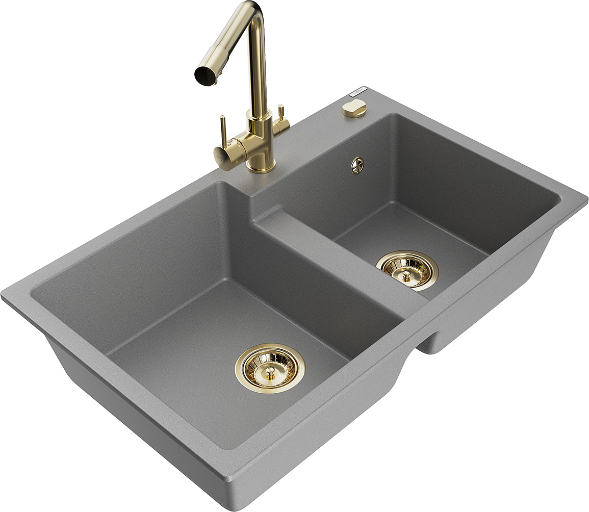 Mexen Tomas двоен гранитен мивка с кухненски смесител Duero, сив - 6516-71-671600-50