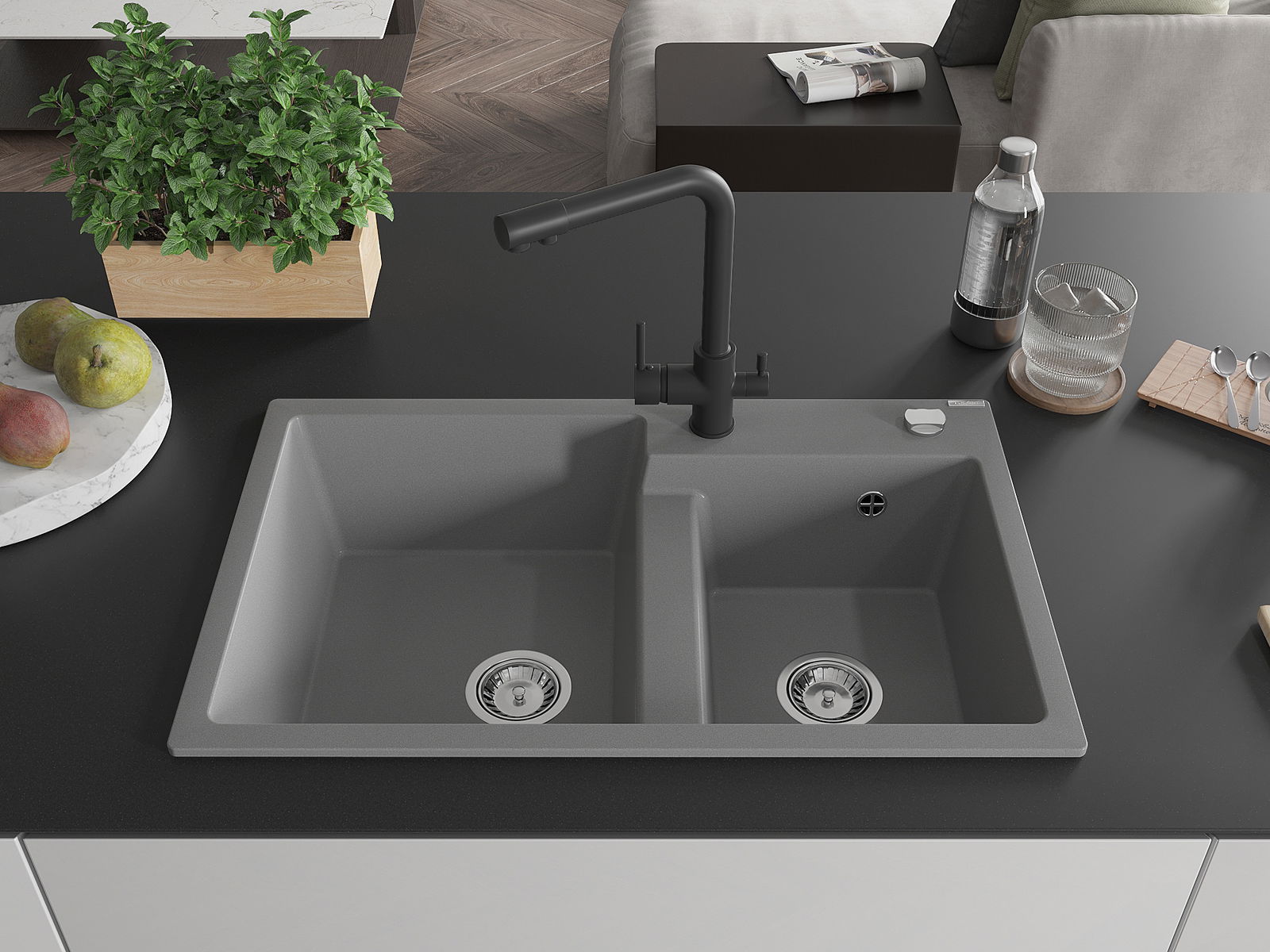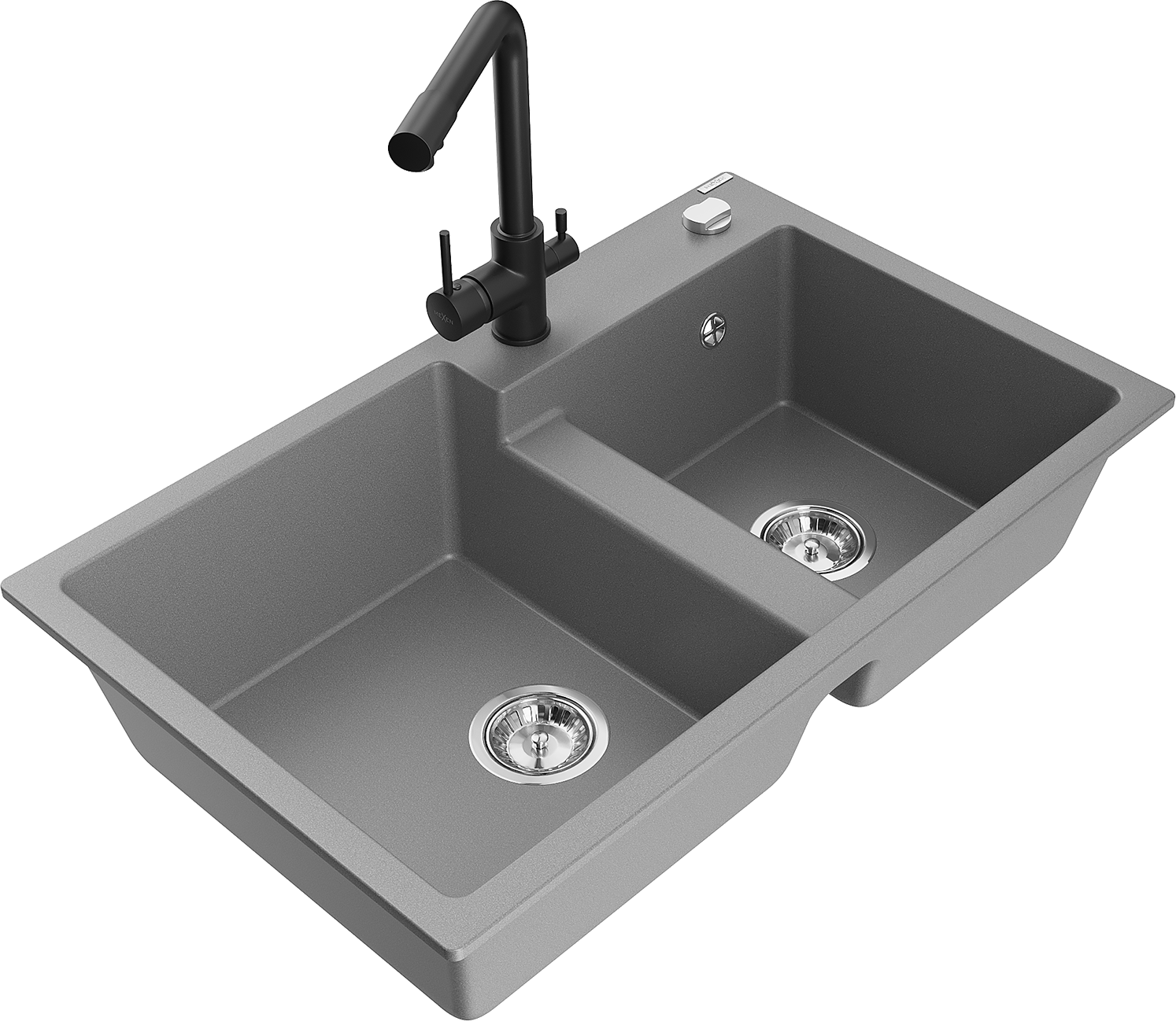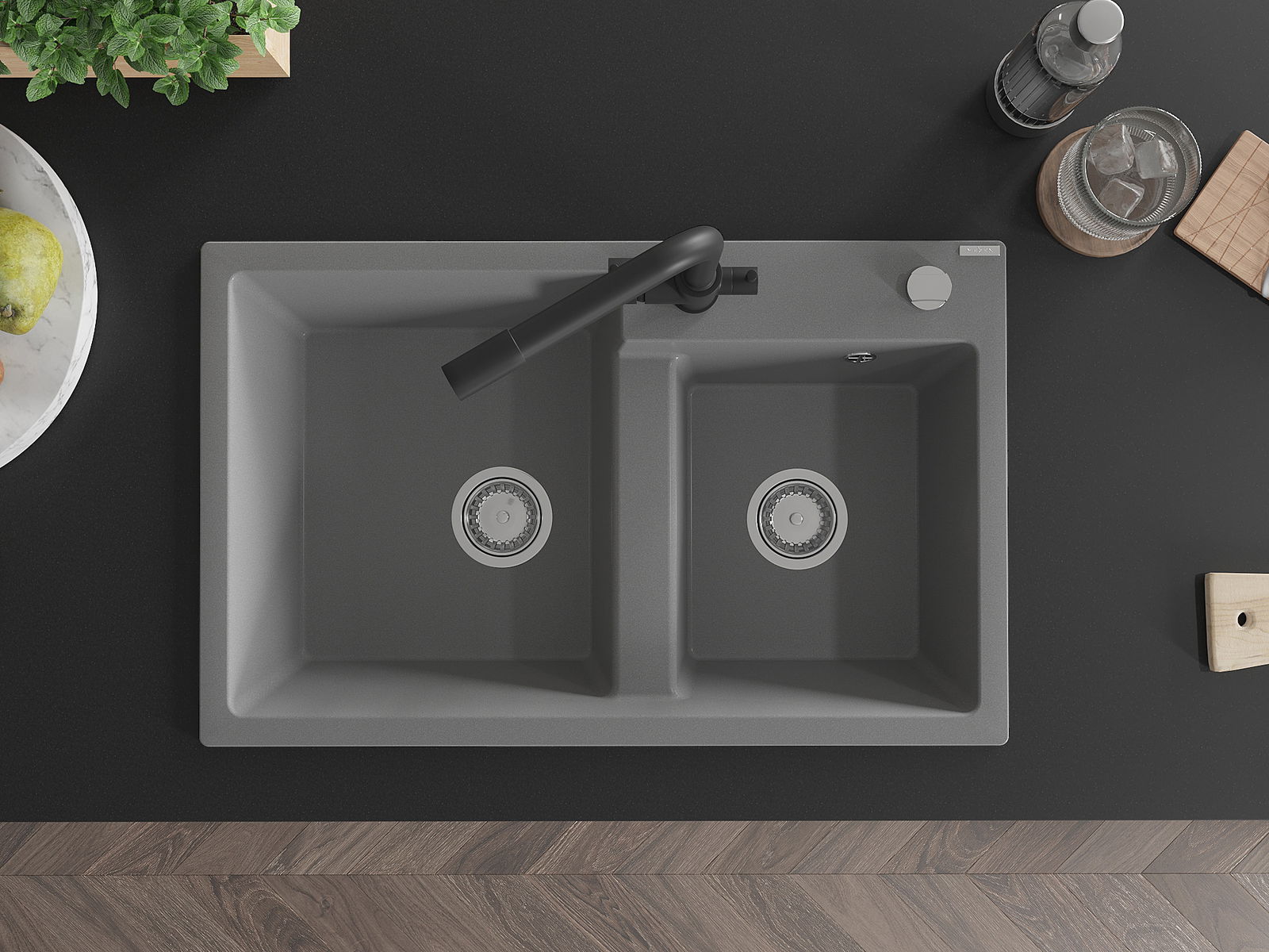 Mexen Tomas двоен гранитен кухненски мивка с батерия Duero, сив - 6516-71-671600-70