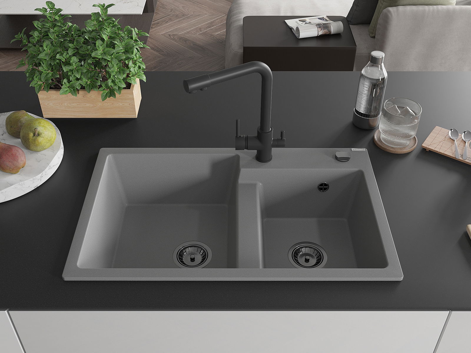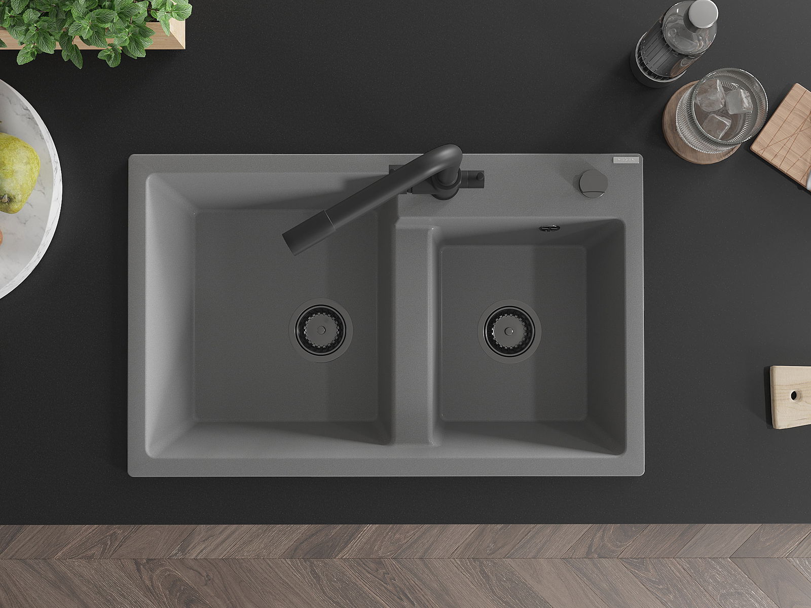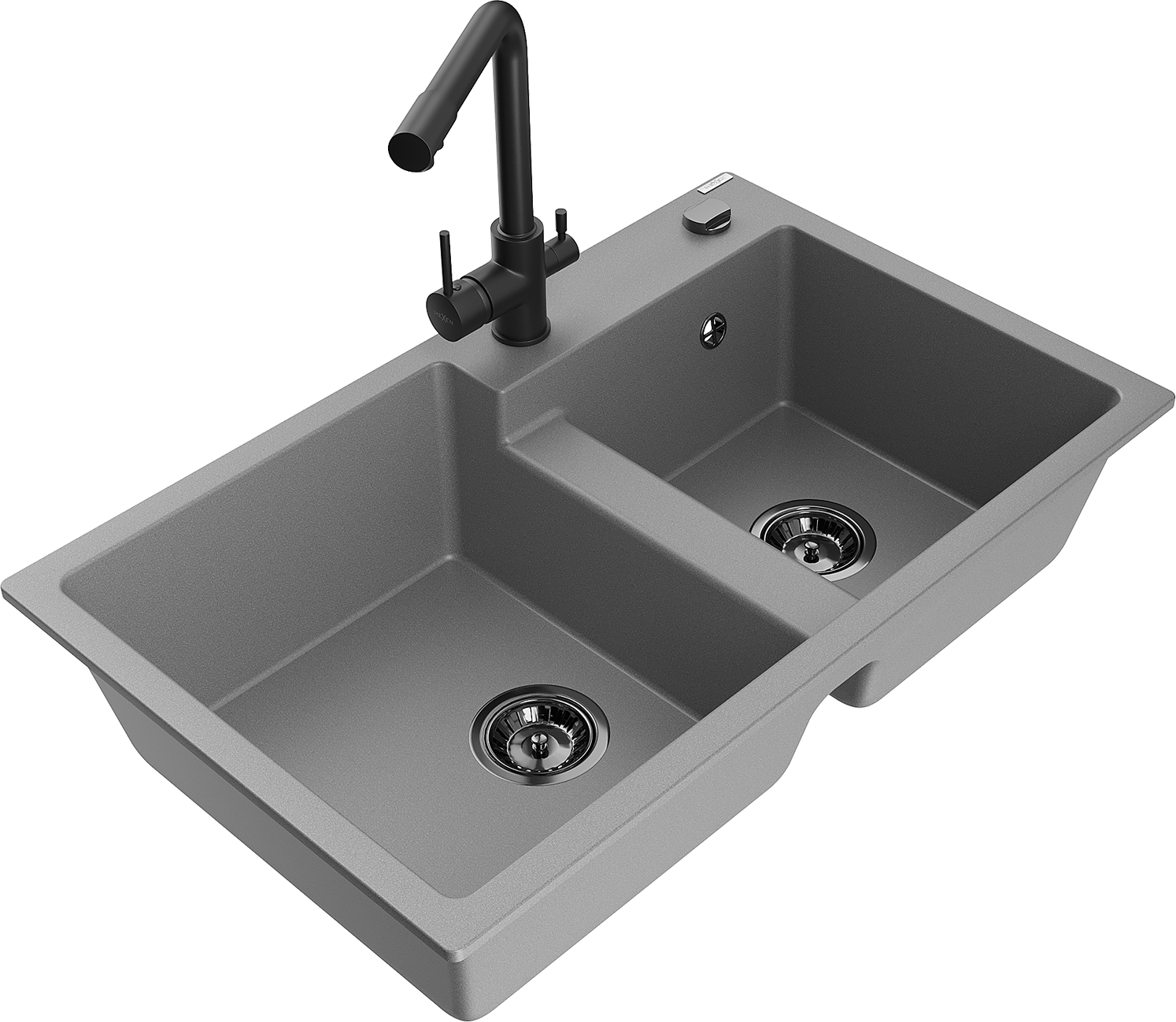 Mexen Tomas двоен гранитен кухненски мивка с батерия Duero, сив - 6516-71-671600-70-B