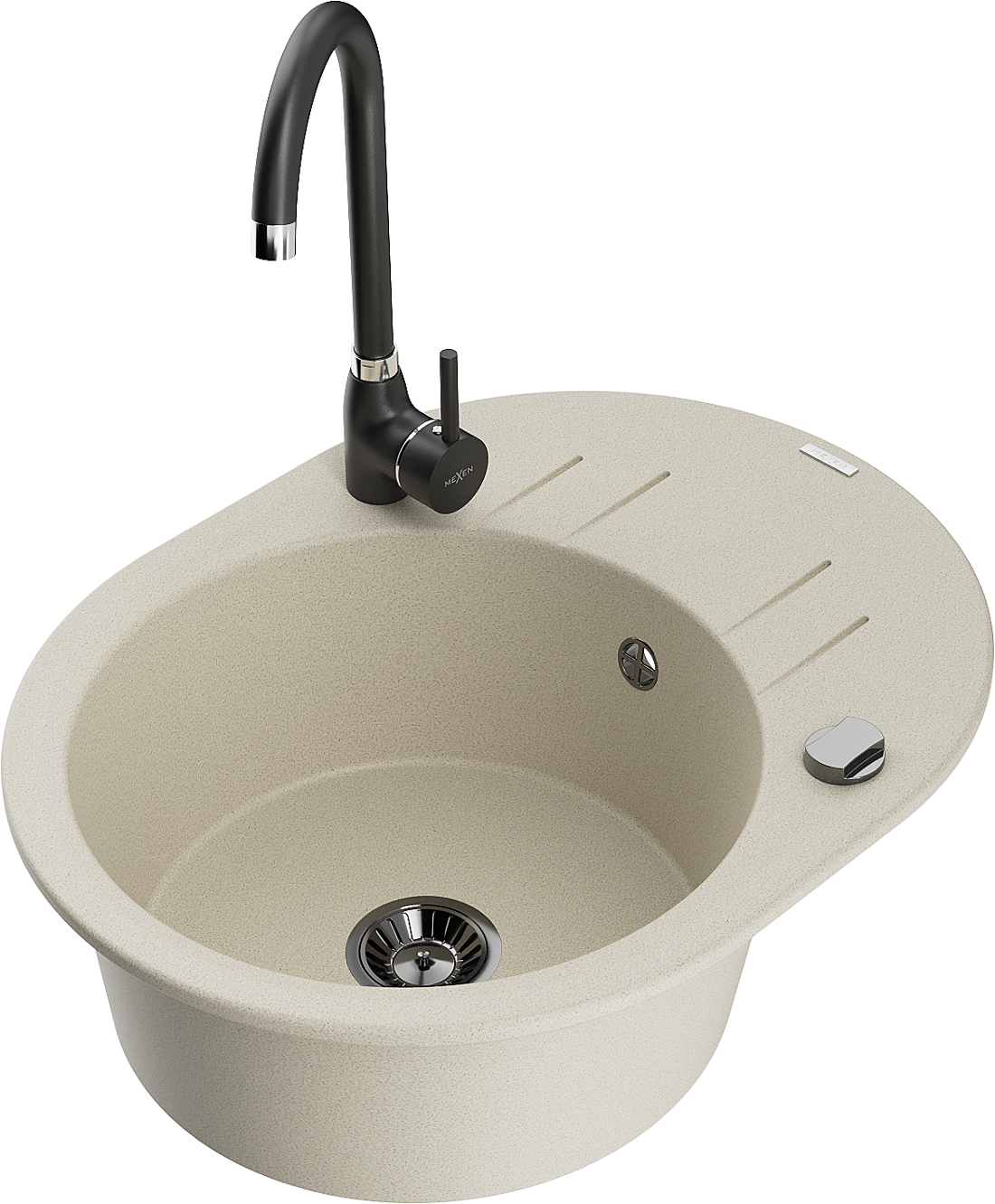 Mexen Kevin гранитна мивка с 1 гнездо с отцедник и кухненски смесител Telma,