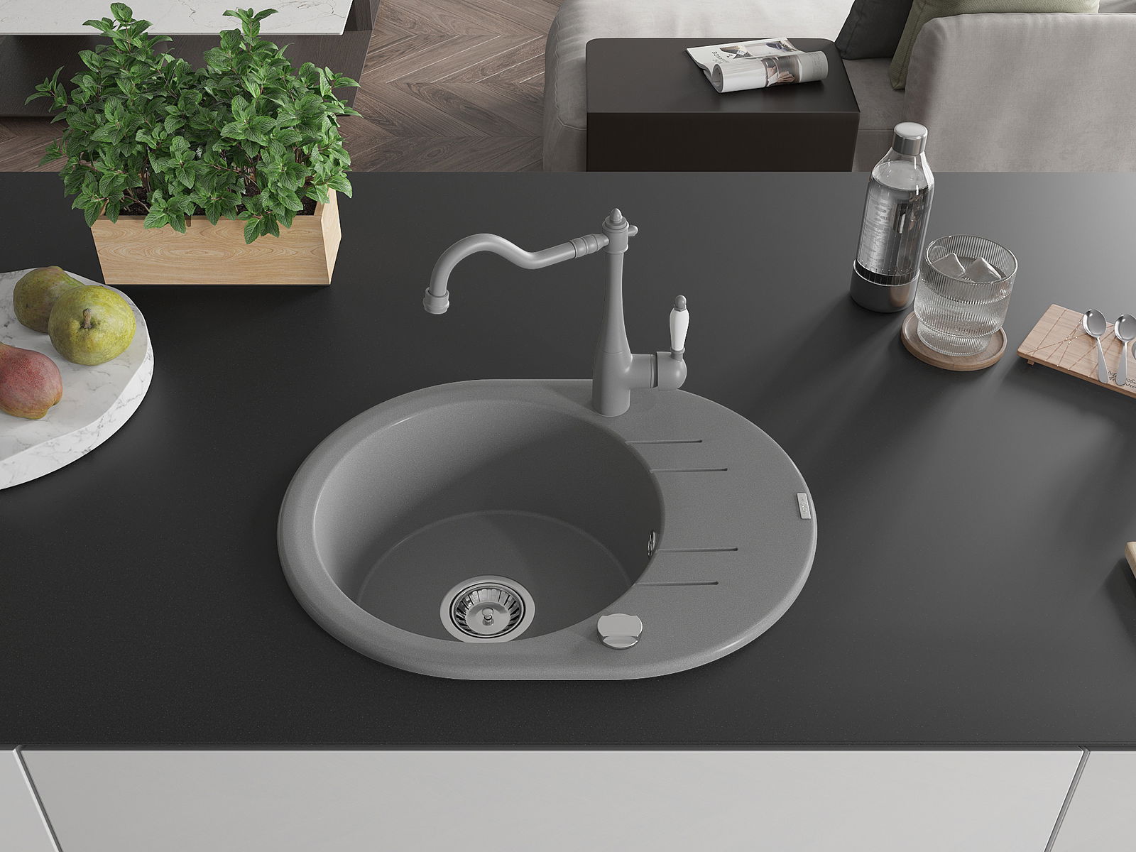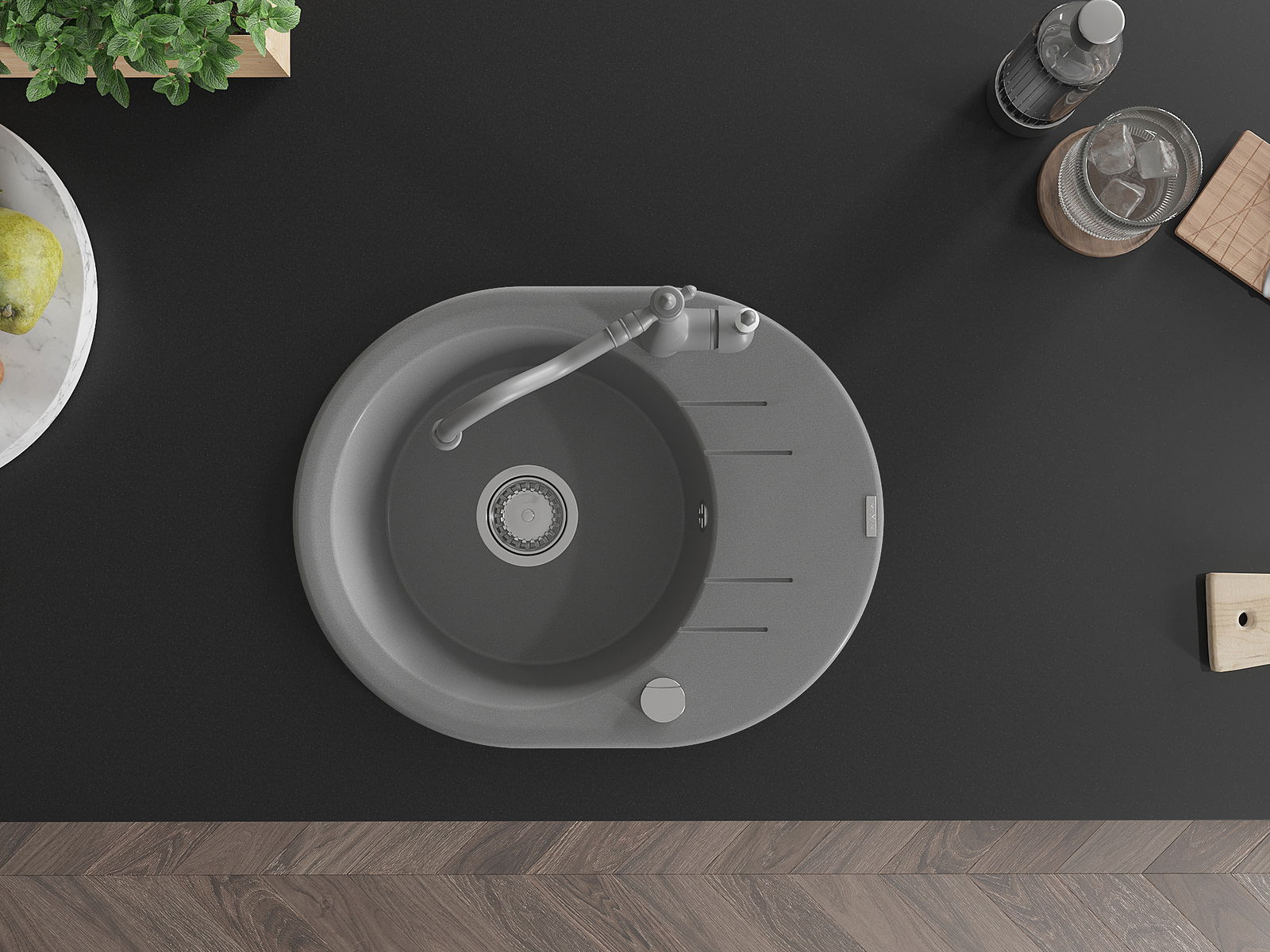 Мивката е направена от висококачествен гранит. Това е елегантно и най -вече практично допълнение към всяка кухня, независимо от нейния стил. Висококачествената и гранитна издръжливост осигуряват много години употреба.
