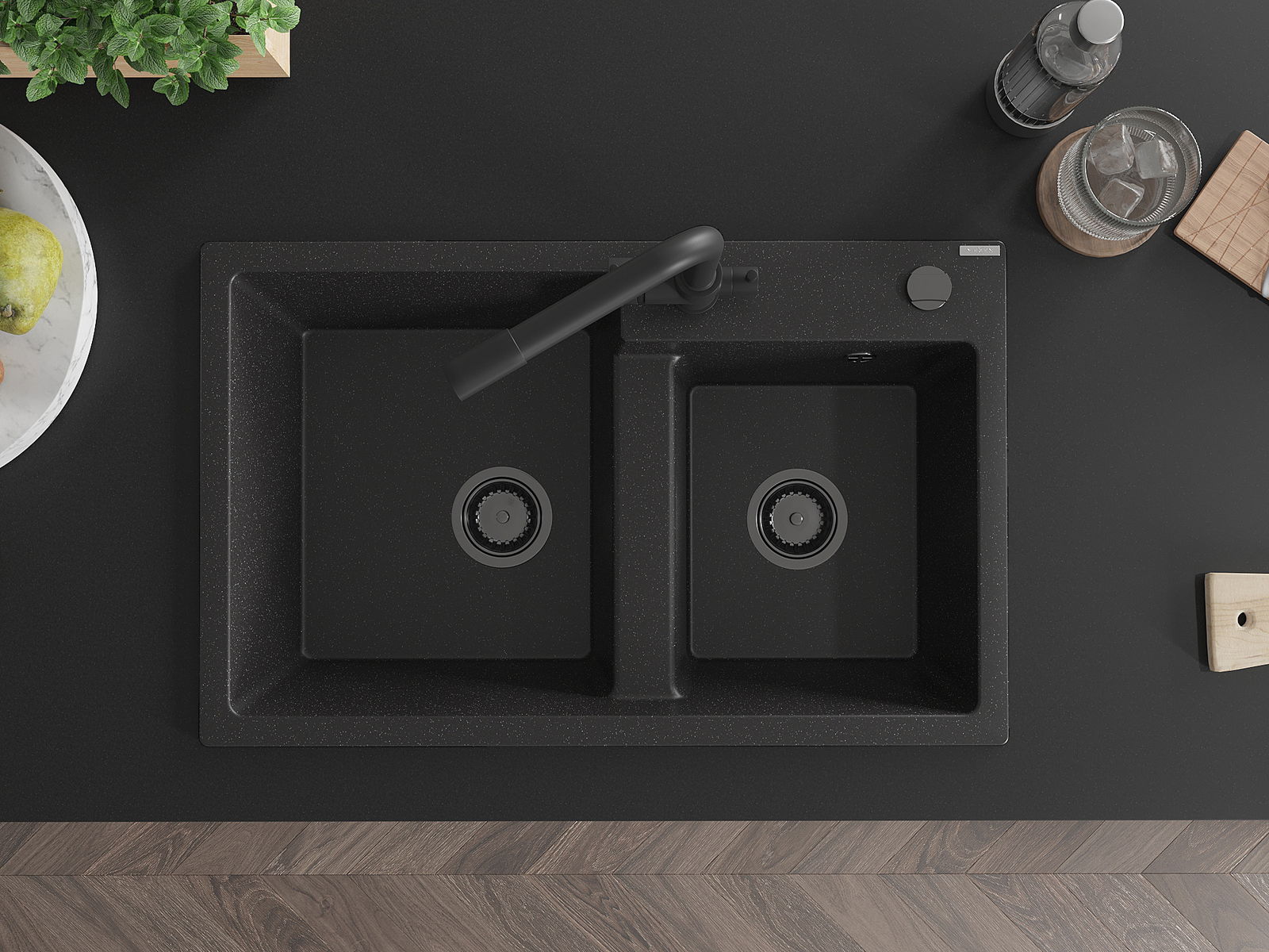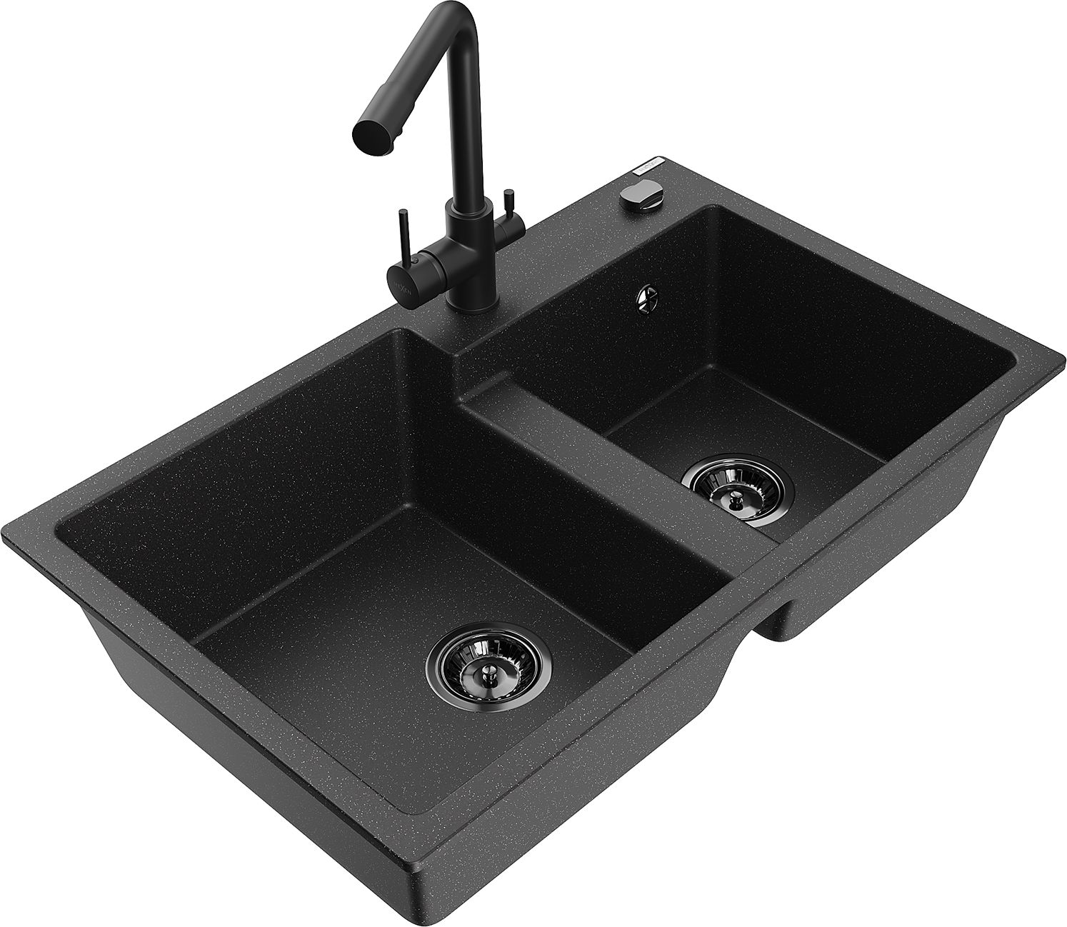 Mexen Tomas гранитна мивка с 2 отделения и кухненски батер Duero, черен/сребърен металик - 6516-73-671600-70-B