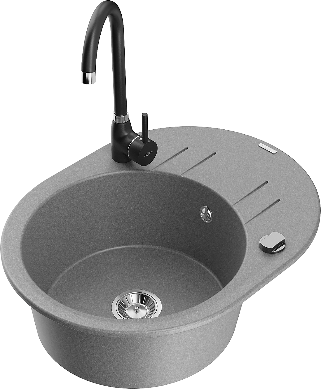 Mexen Kevin гранитна мивка с една камера и отцедник и кухненски кран Telma, сив - 6517-71-670200-70