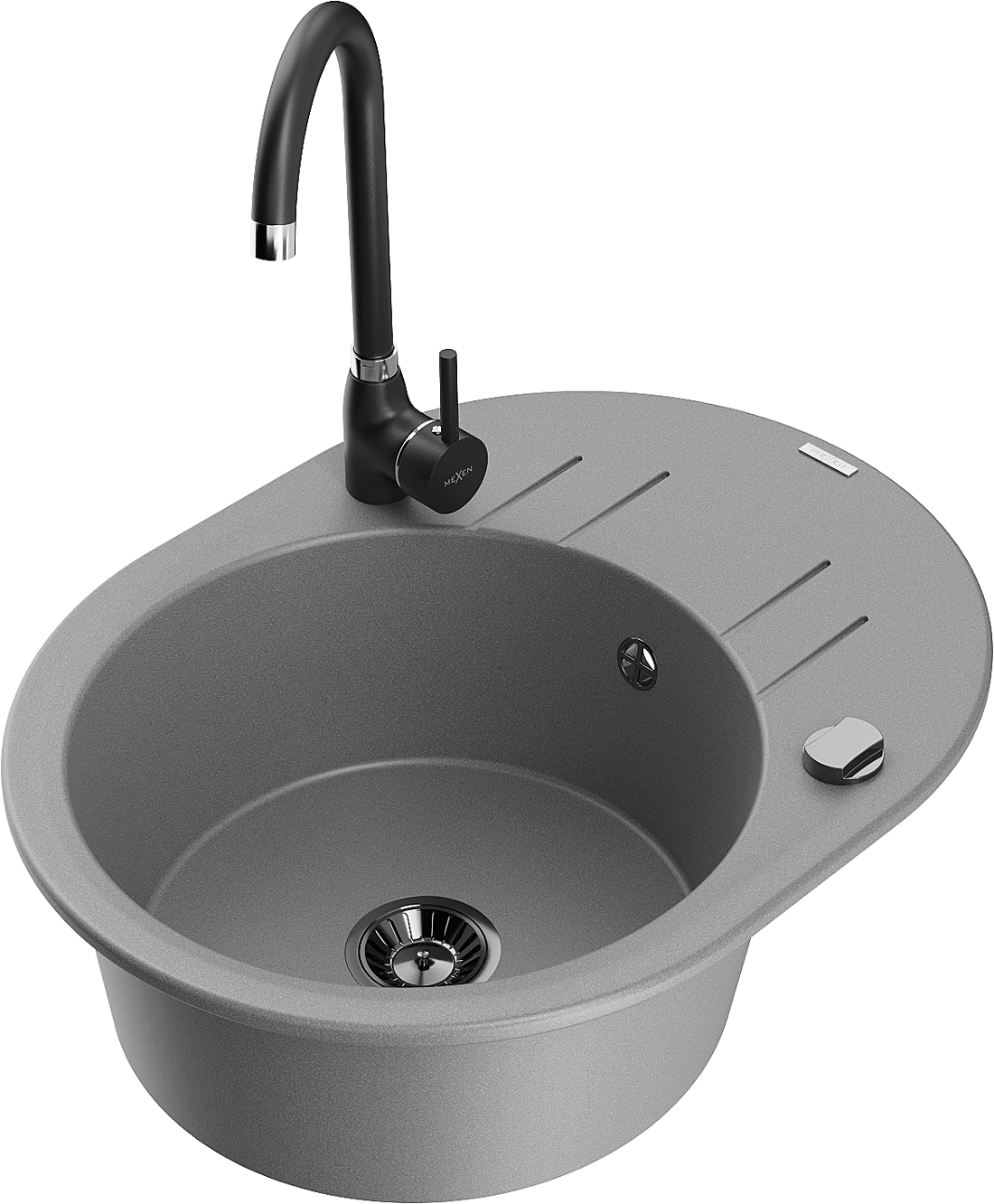 Мивка от гранит Mexen Kevin с една камера и отцедник и кухненски смесител Telma, сив - 6517-71-670200-70-B