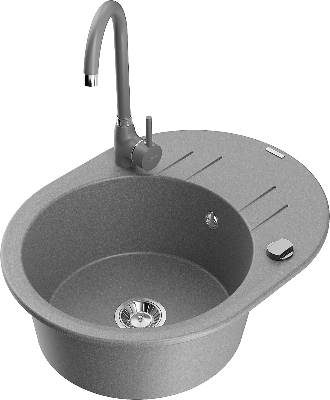 Mexen Kevin гранитна мивка с 1 отделение с отцедник и кухненски смесител Telma, сив - 6517-71-670200-71