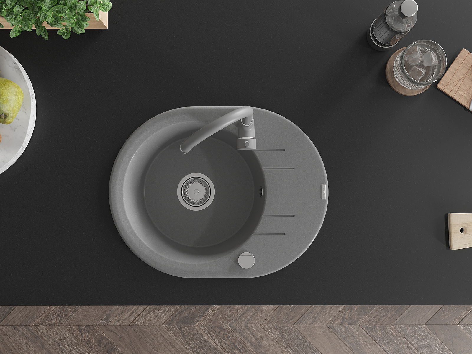 Мивката е направена от висококачествен гранит. Това е елегантно и най -вече практично допълнение към всяка кухня, независимо от нейния стил. Висококачествената и гранитна издръжливост осигуряват много години употреба.