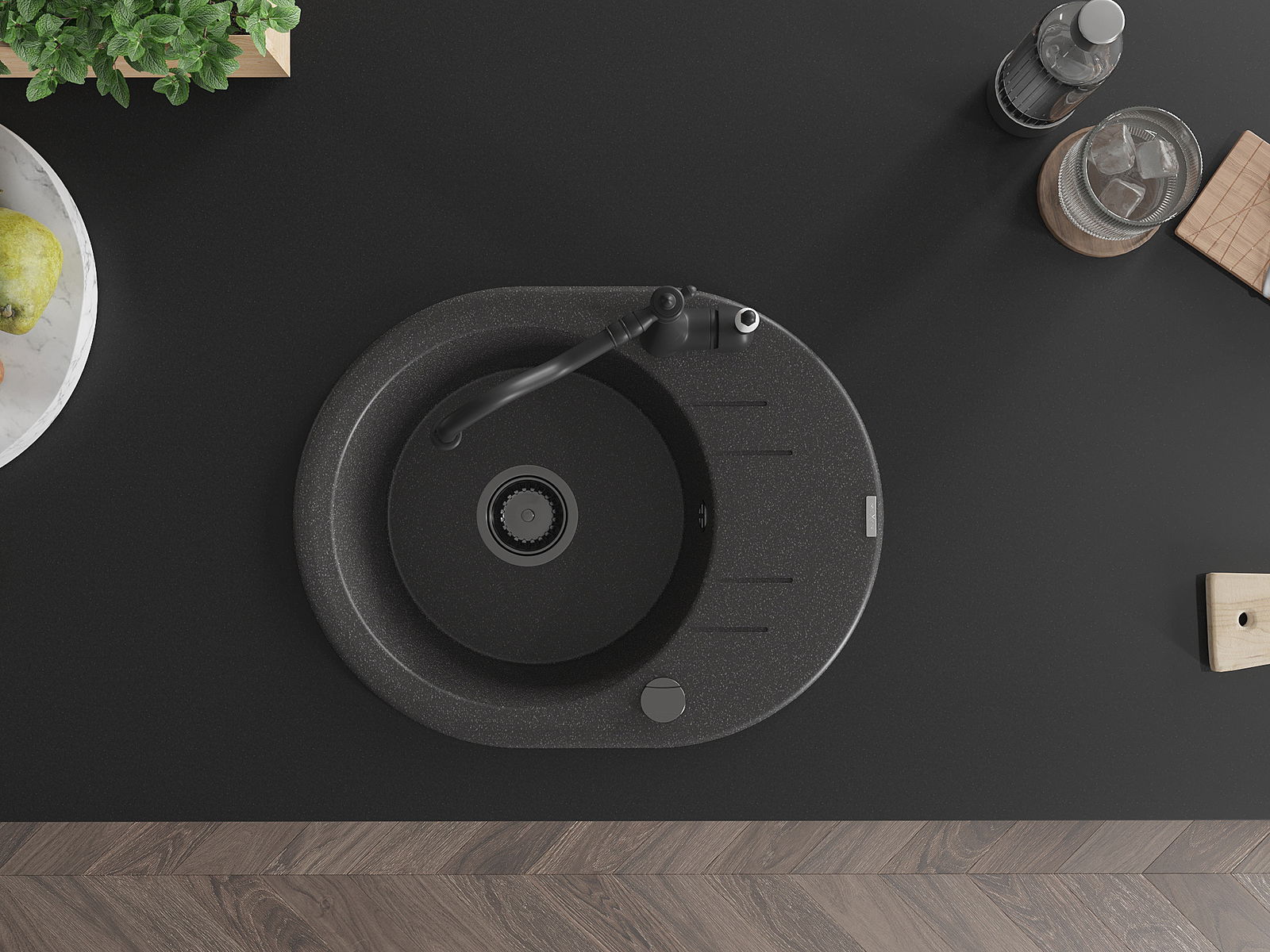 Мивката е направена от висококачествен гранит. Това е елегантно и най -вече практично допълнение към всяка кухня, независимо от нейния стил. Висококачествената и гранитна издръжливост осигуряват много години употреба.