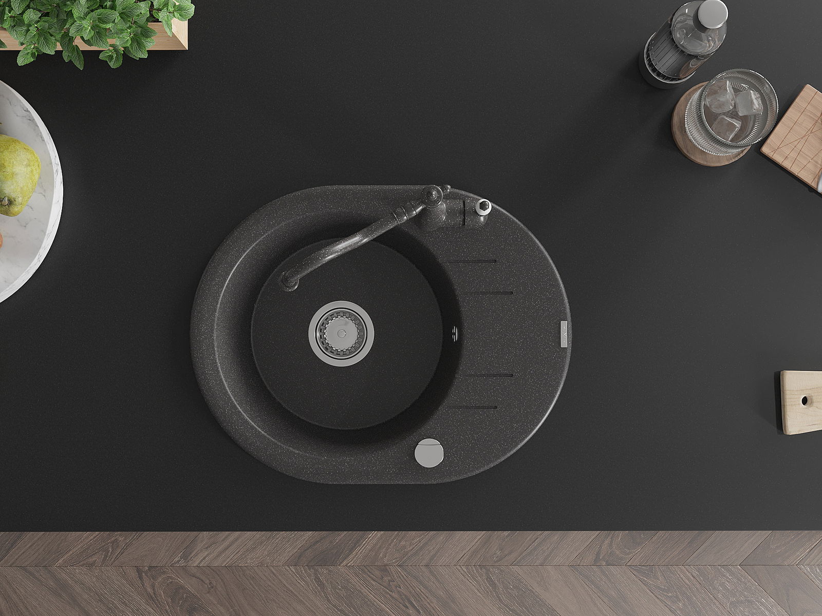 Мивката е направена от висококачествен гранит. Това е елегантно и най -вече практично допълнение към всяка кухня, независимо от нейния стил. Висококачествената и гранитна издръжливост осигуряват много години употреба.