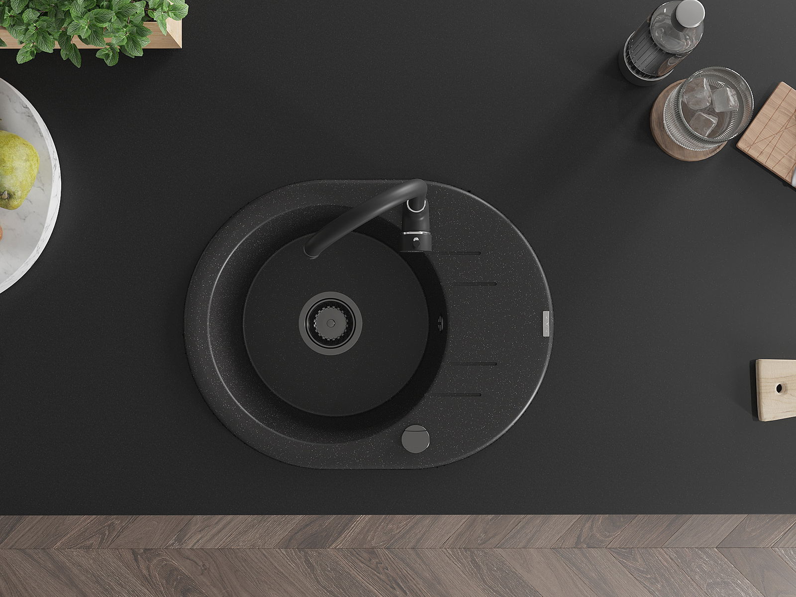 Мивката е направена от висококачествен гранит. Това е елегантно и най -вече практично допълнение към всяка кухня, независимо от нейния стил. Висококачествената и гранитна издръжливост осигуряват много години употреба.