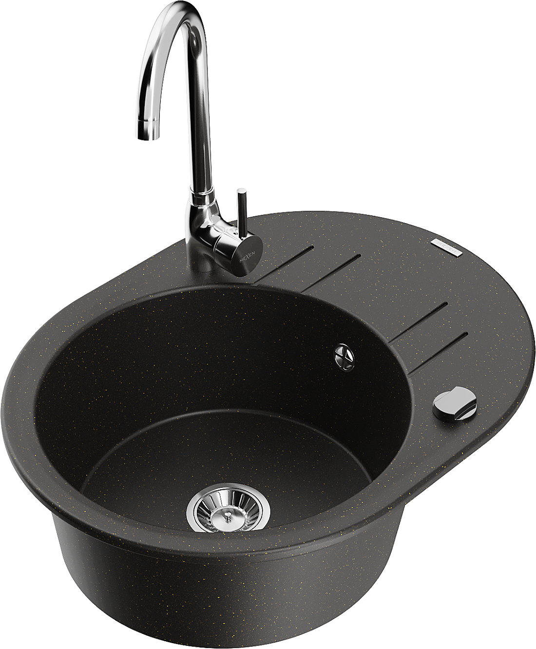 Mexen Kevin гранитна мивка с едно корито с отцедник и кухненски смесител