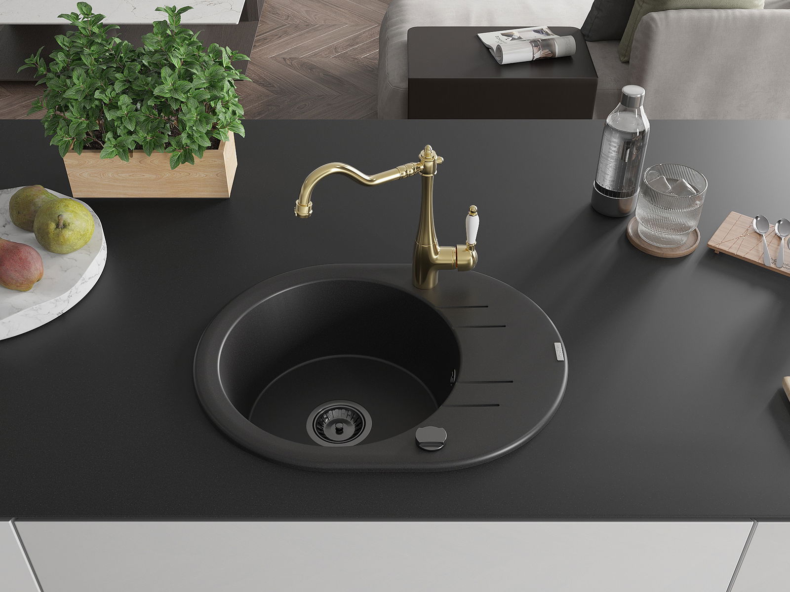 Мивката е направена от висококачествен гранит. Това е елегантно и най -вече практично допълнение към всяка кухня, независимо от нейния стил. Висококачествената и гранитна издръжливост осигуряват много години употреба.