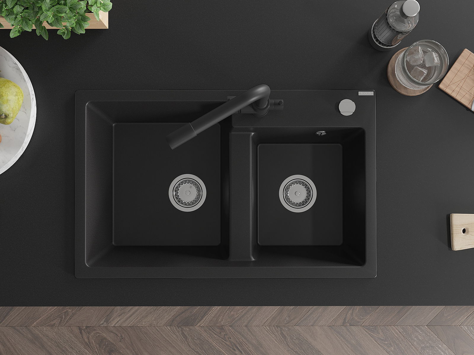 Mexen Tomas гранитна мивка с 2 отделения с кухненски смесител Duero, черен - 6516-77-671600-70