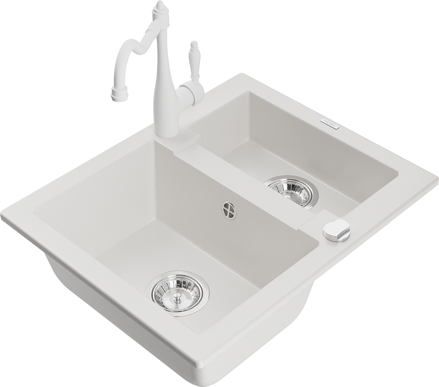 Mexen Carlos гранитна мивка 1,5-комплектна с кухненски смесител Carla, бял - 6518-20-670700-20