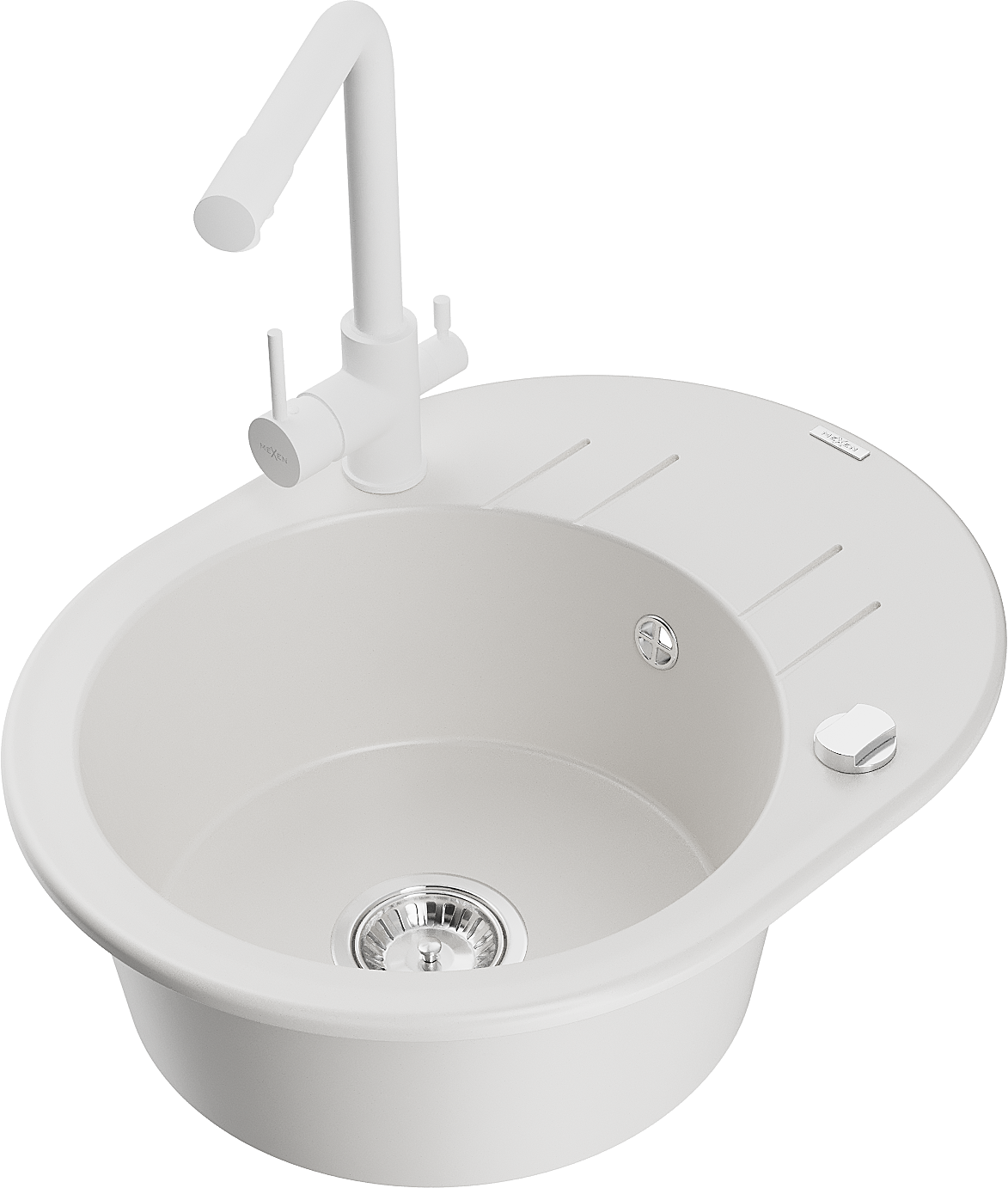 Mexen Kevin кухненска мивка от гранит с 1 камера с дренаж и кухненски смесител Duero, бял - 6517-20-671600-20