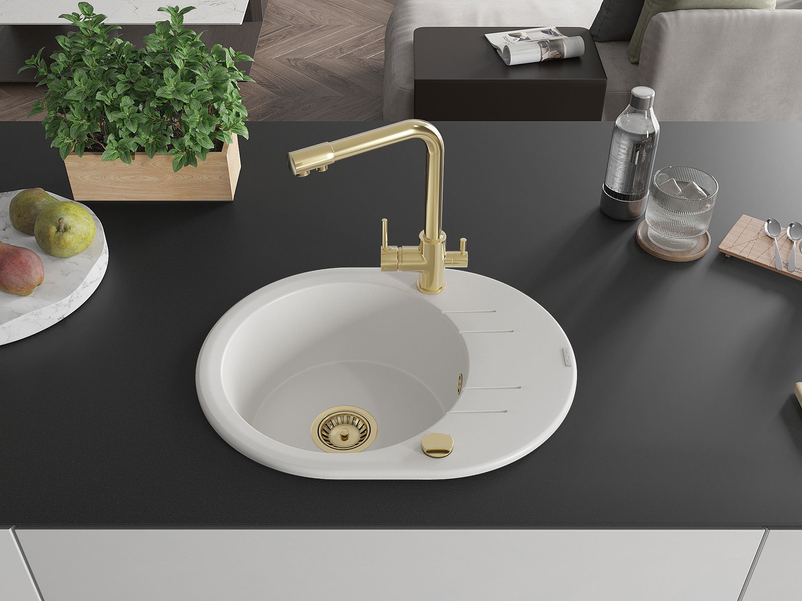 Повърхността на мивката е устойчива на петна и обезцветяване, благодарение на които е лесно да се почиства и запазва цвета си за дълго време. Естетически и практически допълващи всяка кухня.