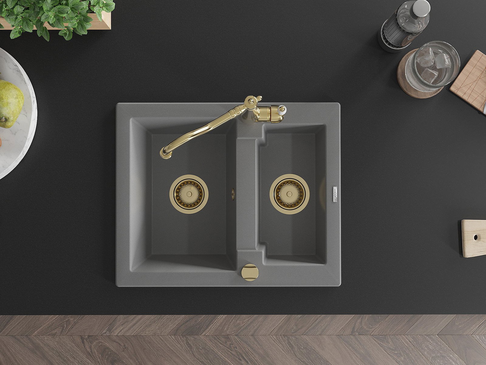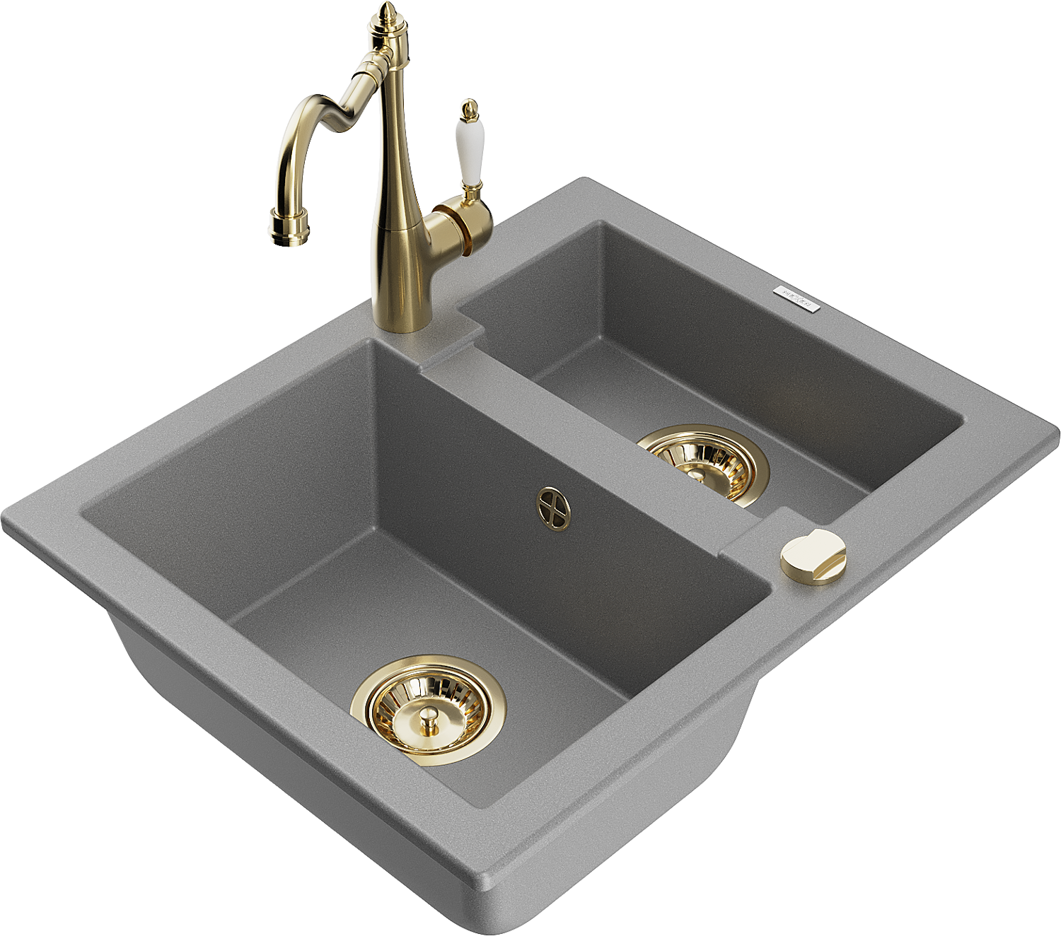 Mexen Carlos гранитна мивка с 1,5 камери с кухненски батерии Carla, сив