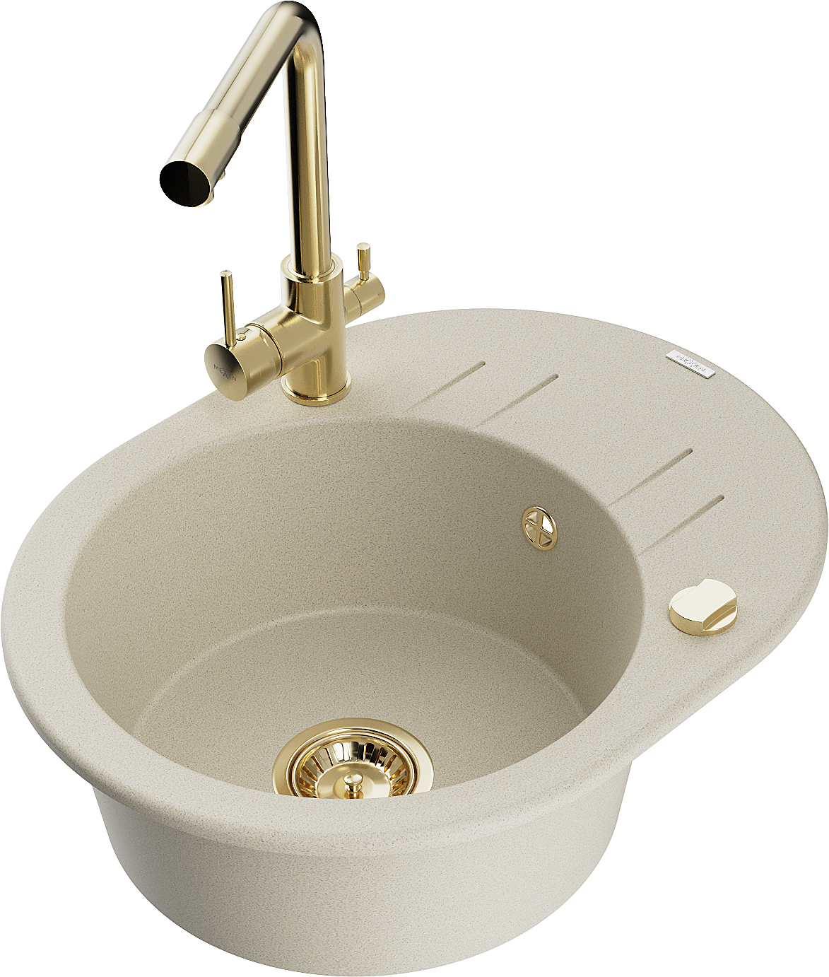 Мивка гранитна 1-камерна Mexen Kevin с отцедник и кухненски смесител Duero, бежов - 6517-69-671600-50