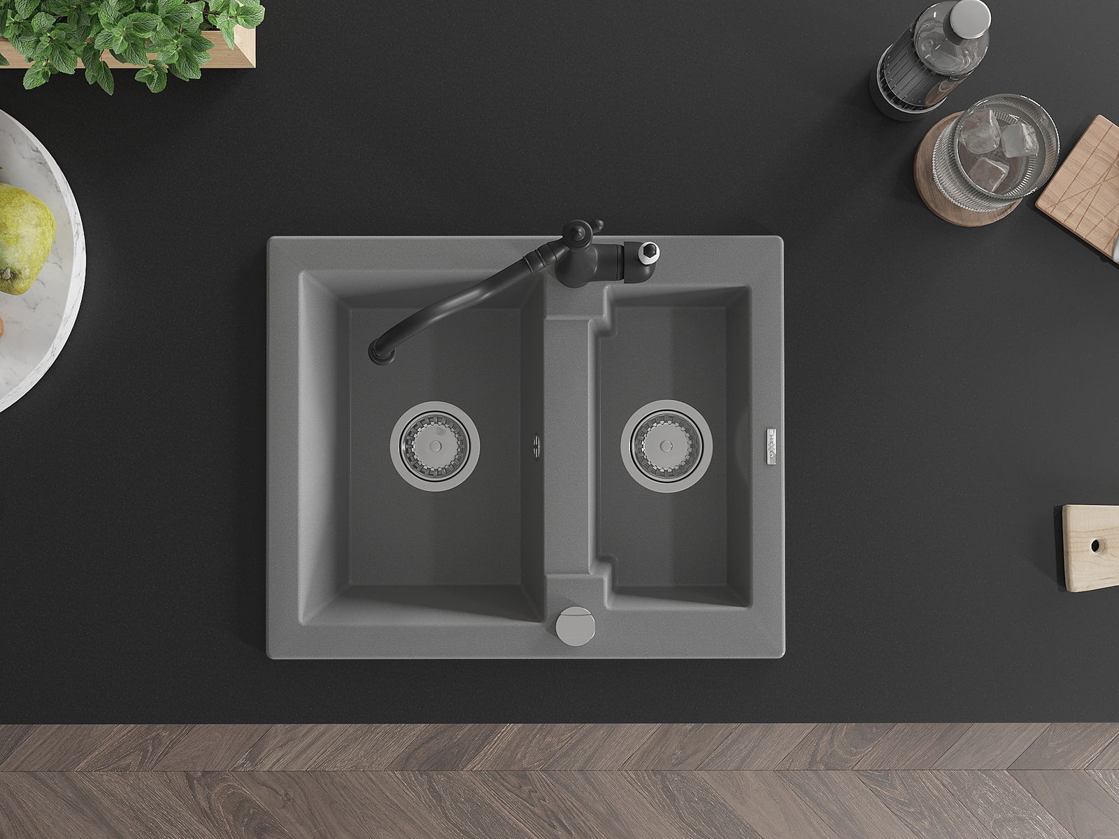 Мексен Карлос гранитна мивка 1,5-камерна с кухненски смесител Карла, сив - 6518-71-670700-70
